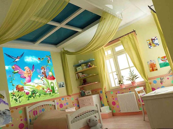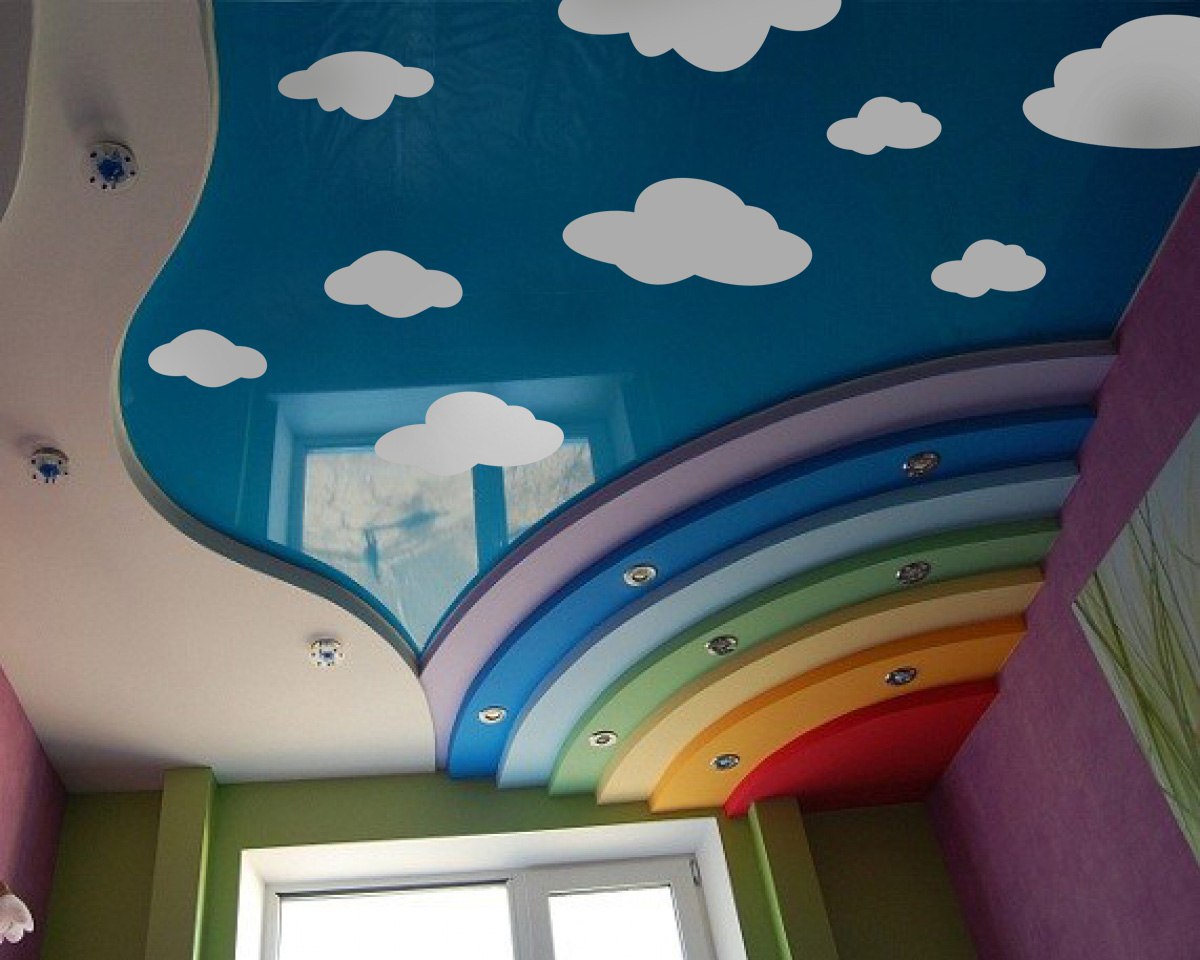 When choosing a ceiling cover, pay attention to the colors. This is very important because your child will see him when he wakes and falls asleep. In this case, the ceiling should cause positive emotions.