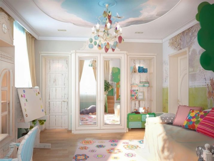 When making the ceiling in the nursery does not need to overdo it. Because even the most beautiful ceiling, but too bright, with a lot of elements and textures, will put pressure on your child, causing him negative.