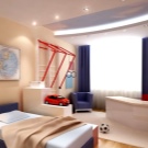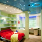 The older a child is, the more he understands, is able to think independently, offers his own ideas for decorating personal space. Your inventor will certainly like mirrored panels above his head. It does not have to be a transparent construction with a reflection of the whole room, otherwise the room will look like a hotel room. It is enough to decorate glossy stretch ceilings with laconic patterns to match the room itself.