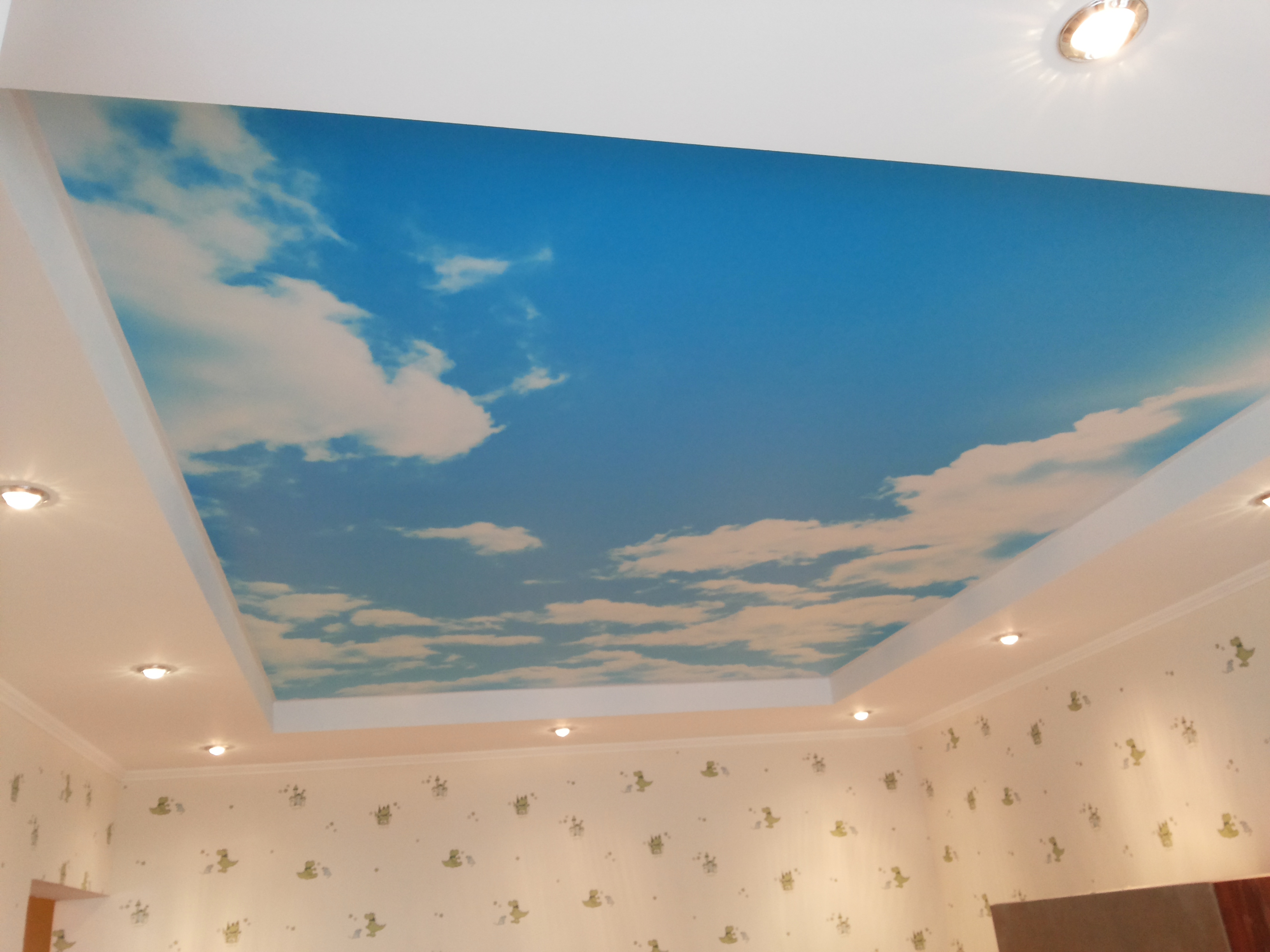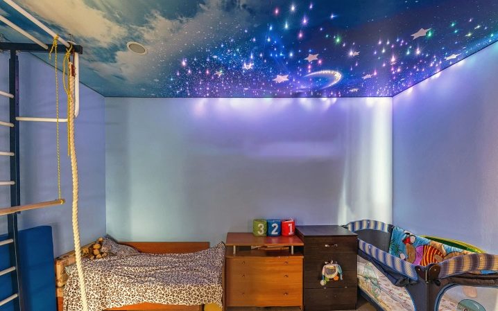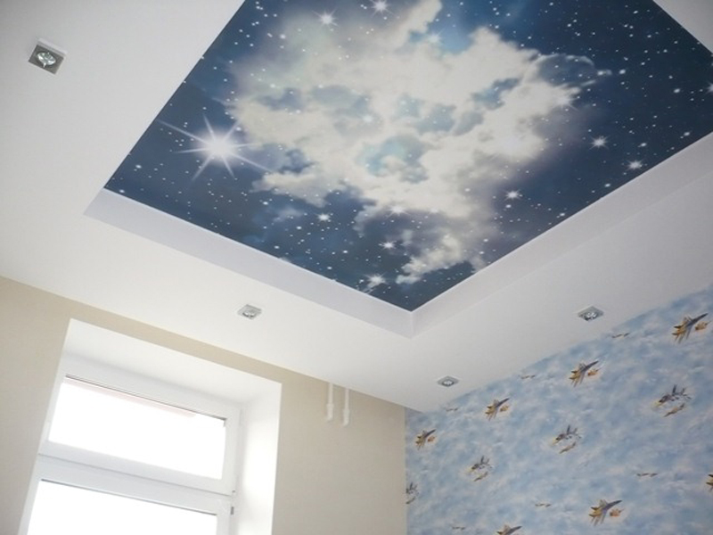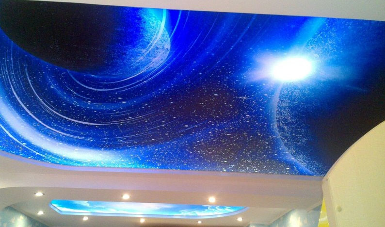 The peculiarities of the ceiling surface of PVC film is its quick and easy installation. In this case, there is no need to turn to professionals if you install a simple structure into one level. If we are talking about two-tier products that require special installation techniques, artistic painting, it is better to use the help of specialists. It is not enough to choose a good print, create an imitation of a spacecraft, an immense cosmos or sky above the head, it is important to correctly present it.