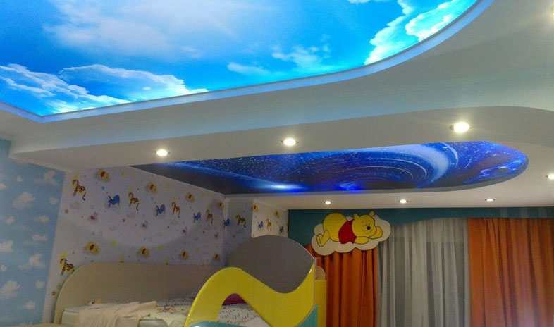 You also get unlimited design possibilities and the absence of risks of cracking and chipping, which is often found when applying plasters. Your child is also not threatened by emergencies associated with leakage, the appearance of fungus, mold. Stretch ceiling will become a reliable obstacle against them. Creating a charming picture above your head, you will contribute to the development of the child, bring up and implant in him a taste for beauty.