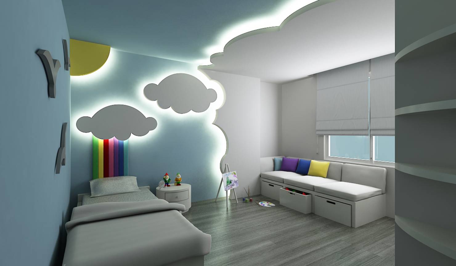 In addition, it is very easy to fix any suspended structures on such ceilings, ranging from lighting fixtures to fun garlands. Beautiful design of a child's room will surely express the individuality of your child!