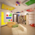 Film or vinyl canvas stretch ceilings are successfully used to create multi-dimensional space in the nursery. And playing the role of domes, arched vaults or various inserts in plasterboard structures and successfully combined with lamps, multi-level stretch ceilings can transform a children's room beyond recognition.