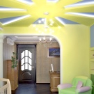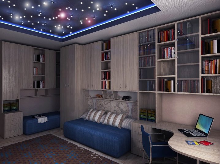 All children without exception - the youngest dreamers, the little pragmatists, the romantic young ladies, and the still hairless, but already very courageous admirers of flying in their sleep and reality. Stellar flicker helps to recreate tiny LEDs or thin fiber-optic cables that are attached to the stretch satin ceiling or go down through it to different heights, taking the light from the projector and reflecting it to the ends of the ceiling structure.