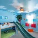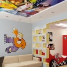 But since children grow very quickly, and their tastes and interior preferences change even more rapidly, with a competent approach to the arrangement of a children's room, it is better to use a stretch ceiling with neutral motifs or scenes that reflect not so much the child’s age, but his character and favorite activities (sports, dances, history, music, drawing, theater, travel).