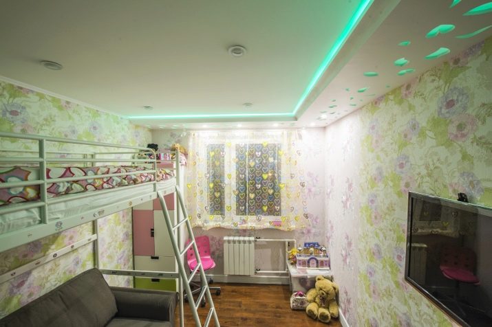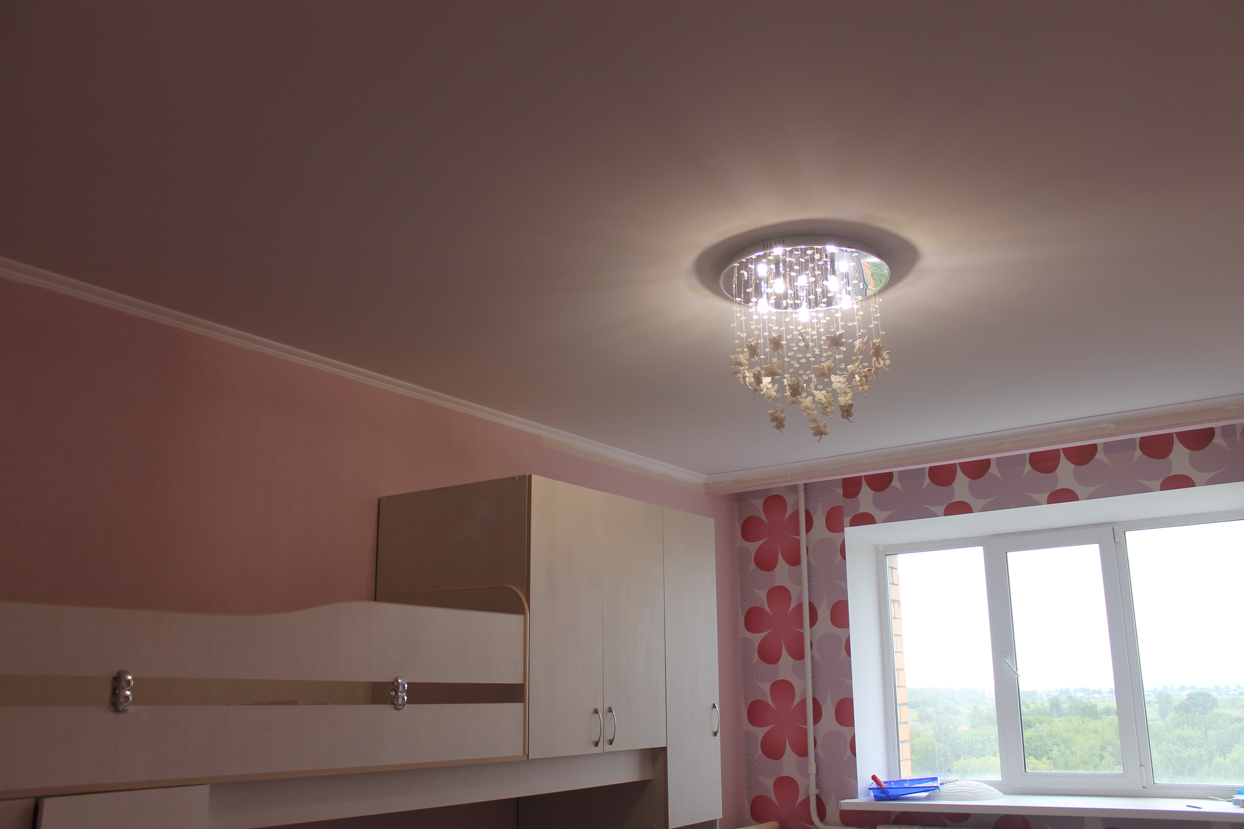 Another myth about stretch ceilings in the children's room tells about the need to select special lamps for them. In fact, there are no restrictions on the choice of lighting for stretch ceilings, although there is a difference in their mounting (built-in lights are mounted to the base ceiling). Also, the recommended power of the screwed light bulbs is set in the range of 35 to 60 watts, otherwise a thin film of the stretch ceiling may be deformed or cracked.