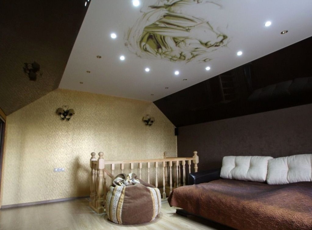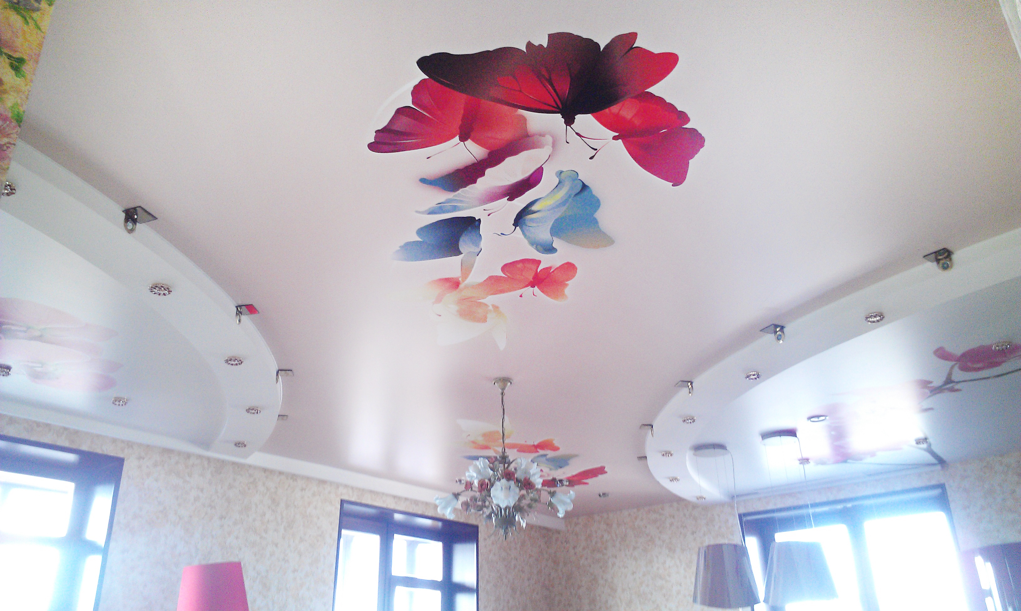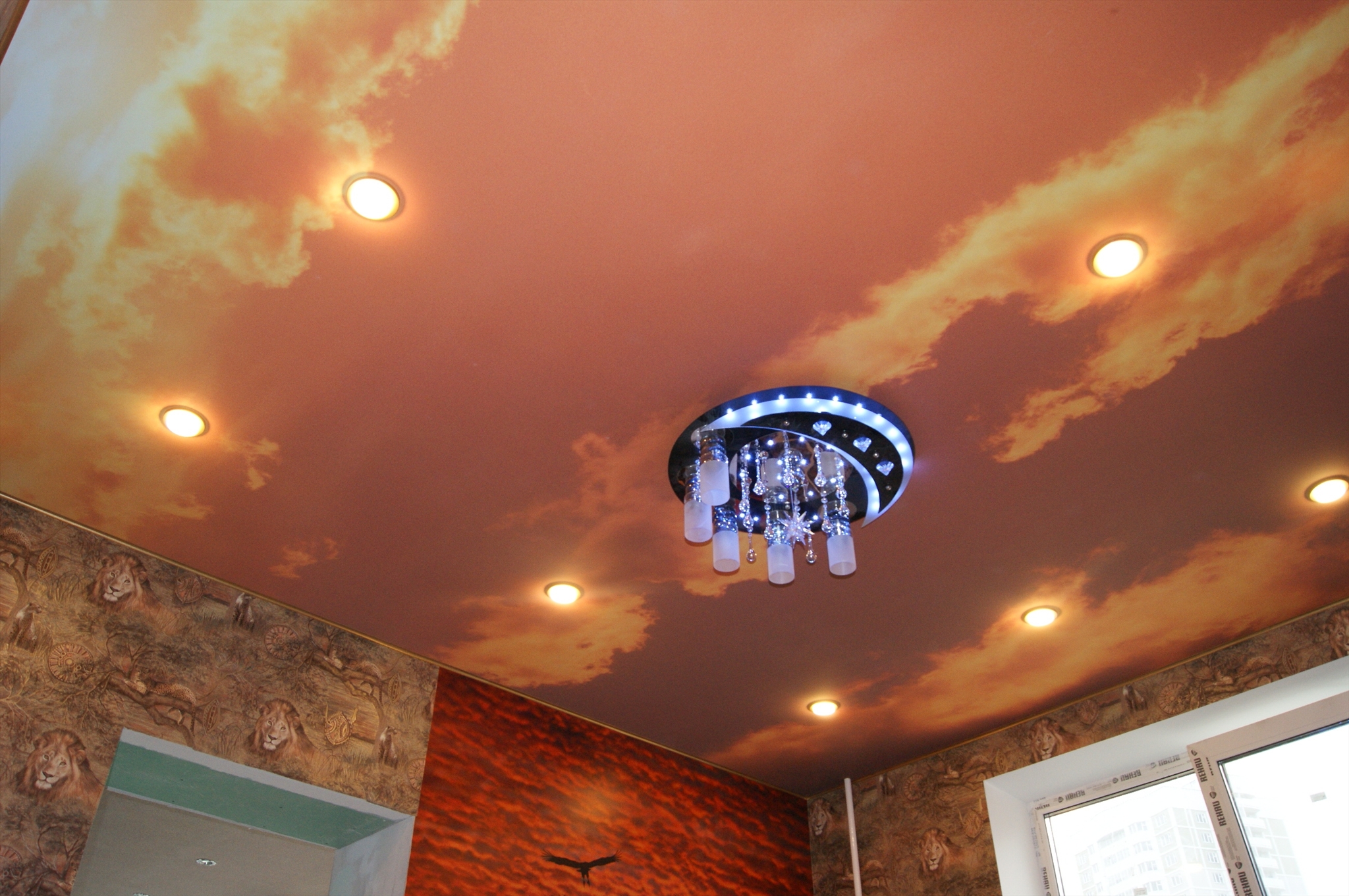 In their reviews, customers often note that the stretched canvas of a ceiling with a photo print comes out very dense, and it is much more difficult to damage it than a thin film. And many more complain that in vain for a long time they did not dare to order photo printing on gloss. Such a bold decision stretch ceiling looks no worse than the usual matte. Although still the best photo printing looks on a satin stretch ceiling.