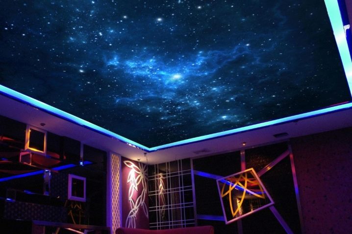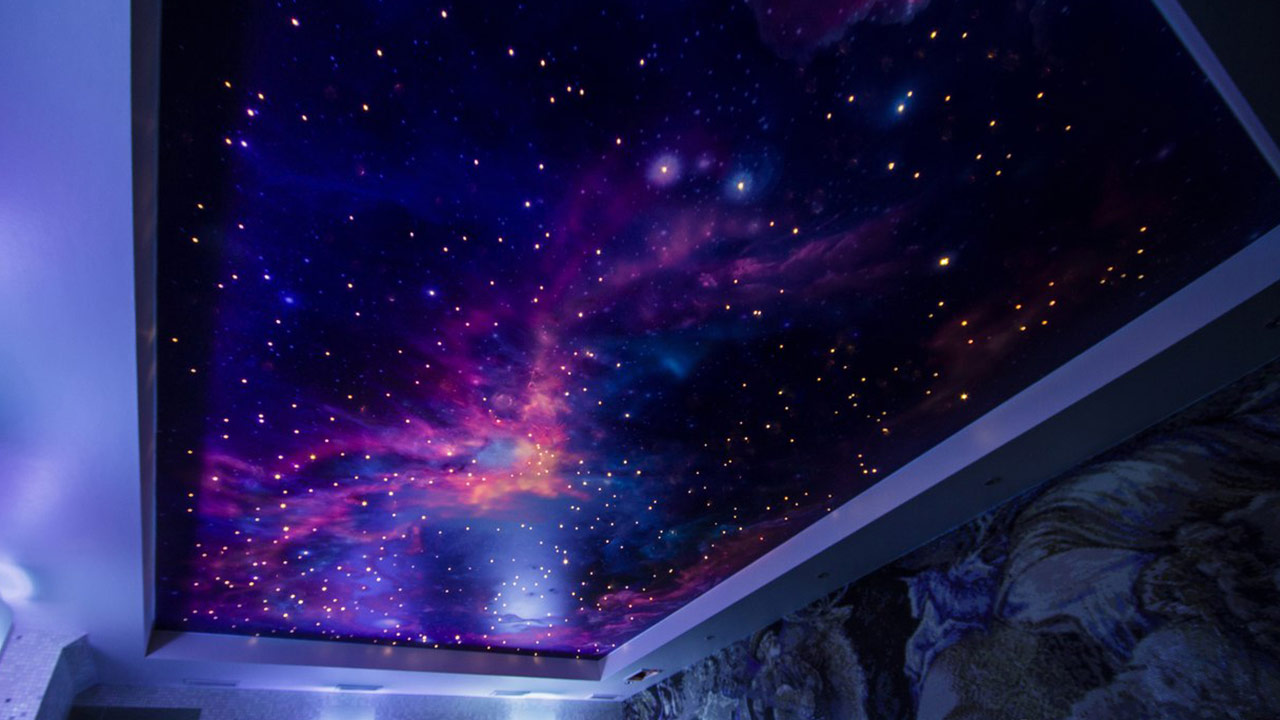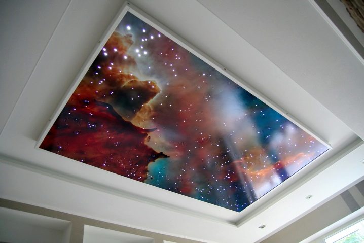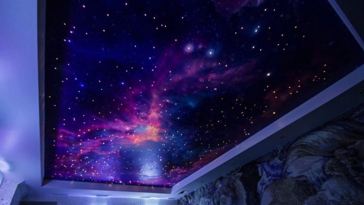 In order to populate the stretch ceiling of a children's room with magic stars, you need to mount a frame for it 120-180 millimeters below the base ceiling, then attach an optical fiber to the ceiling and place the light generator, and only then close the entire structure with a stretch satin canvas.