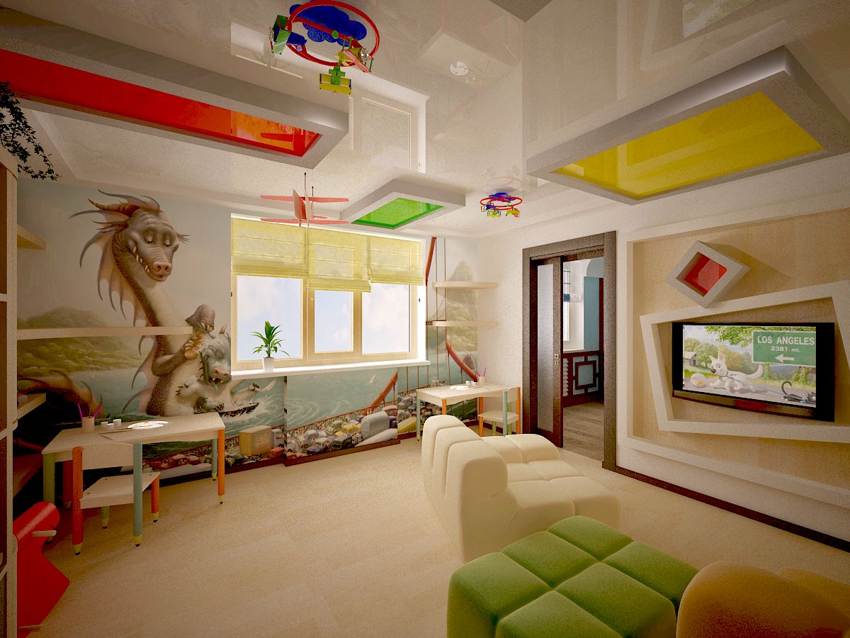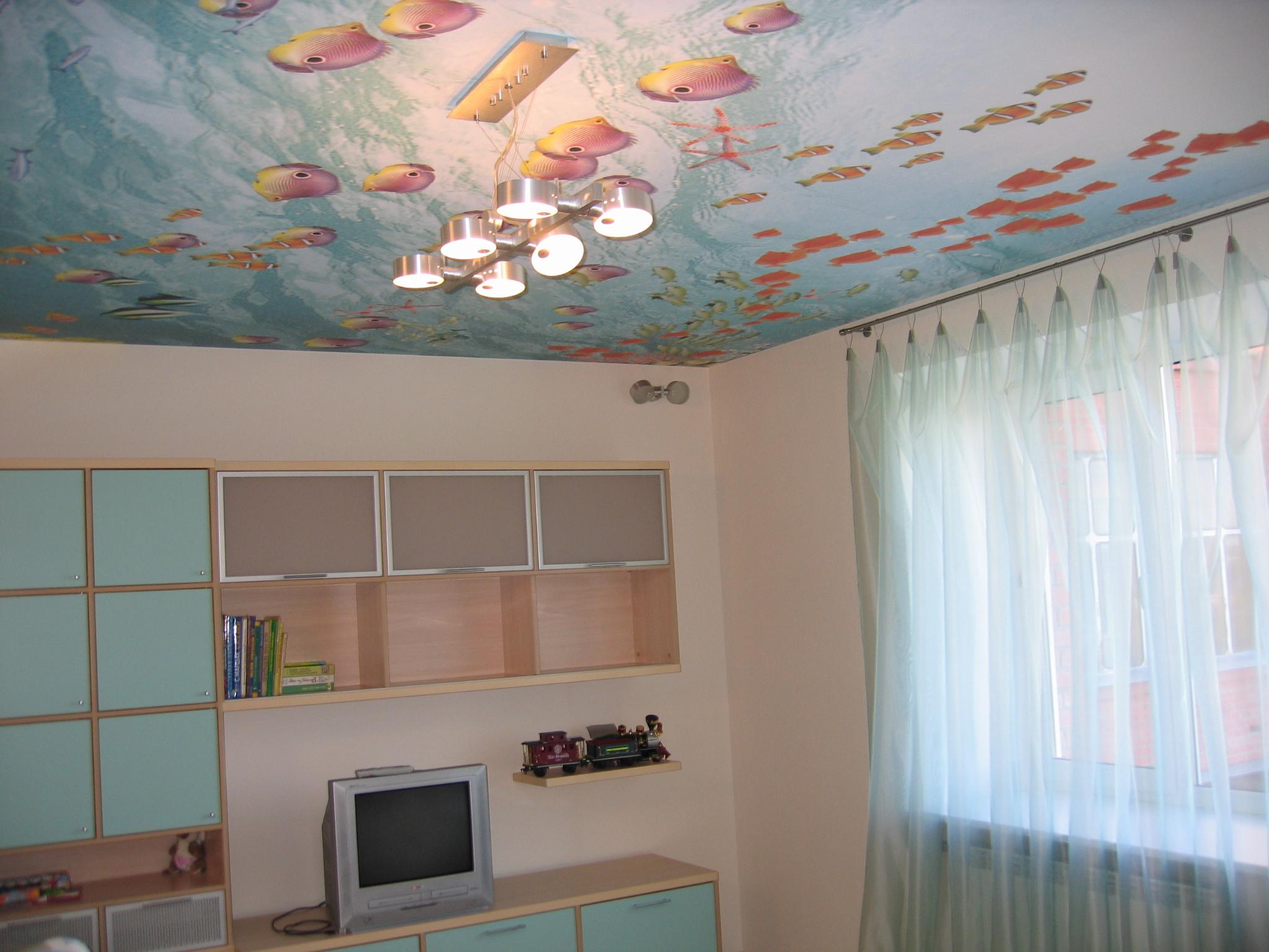 The main and, it seems, the only significant problem of suspended ceilings in the children's playroom is their vulnerability to sharp objects. Yes, as the reviews and customer experience show, a thin canvas of a stretch PVC film ceiling with due diligence of a child can still be damaged by aptly launched boomerang or blades of a flying airplane.However, this can be easily avoided if you move these games outside or immediately install them in a children's stretch ceiling made of more durable vinyl fabric. After all, a torn canvas stretch film ceiling aesthetic reconstruction is not always subject to.