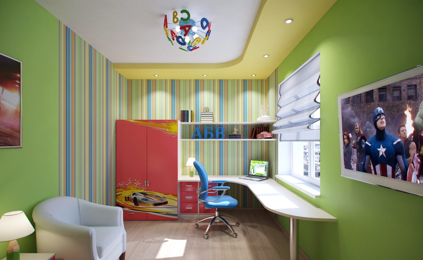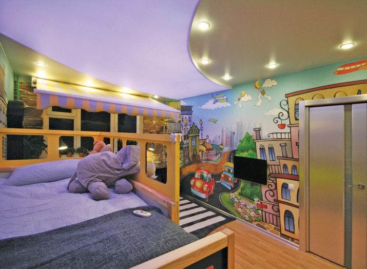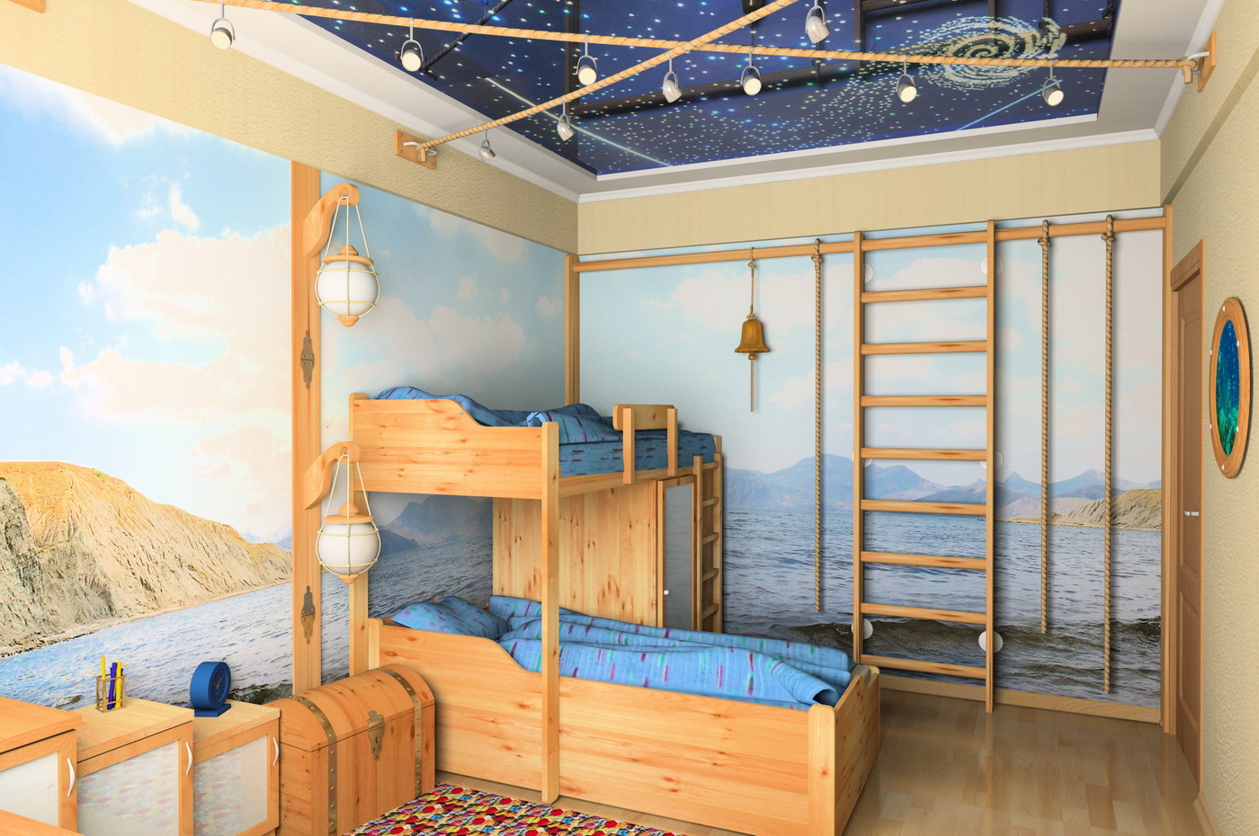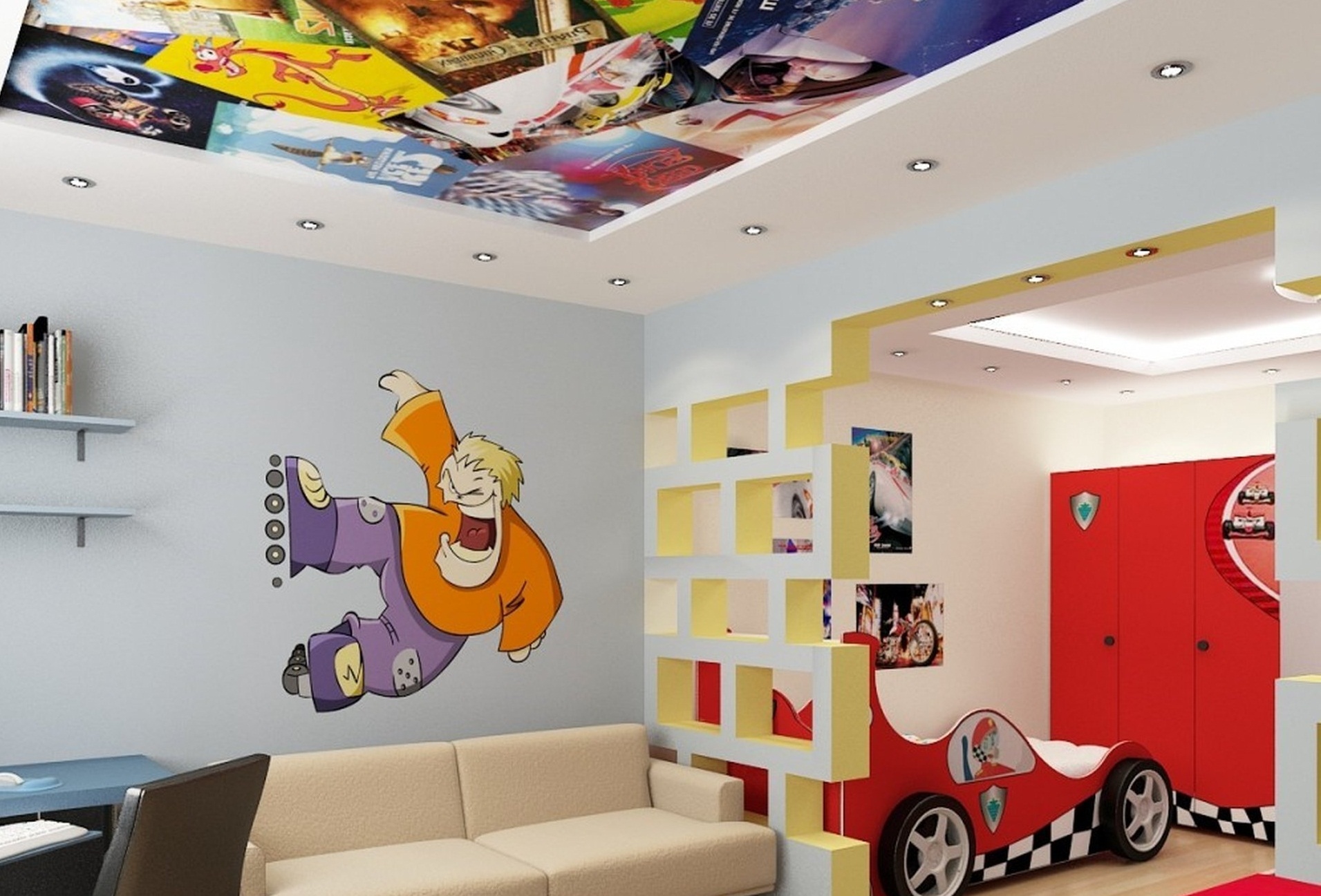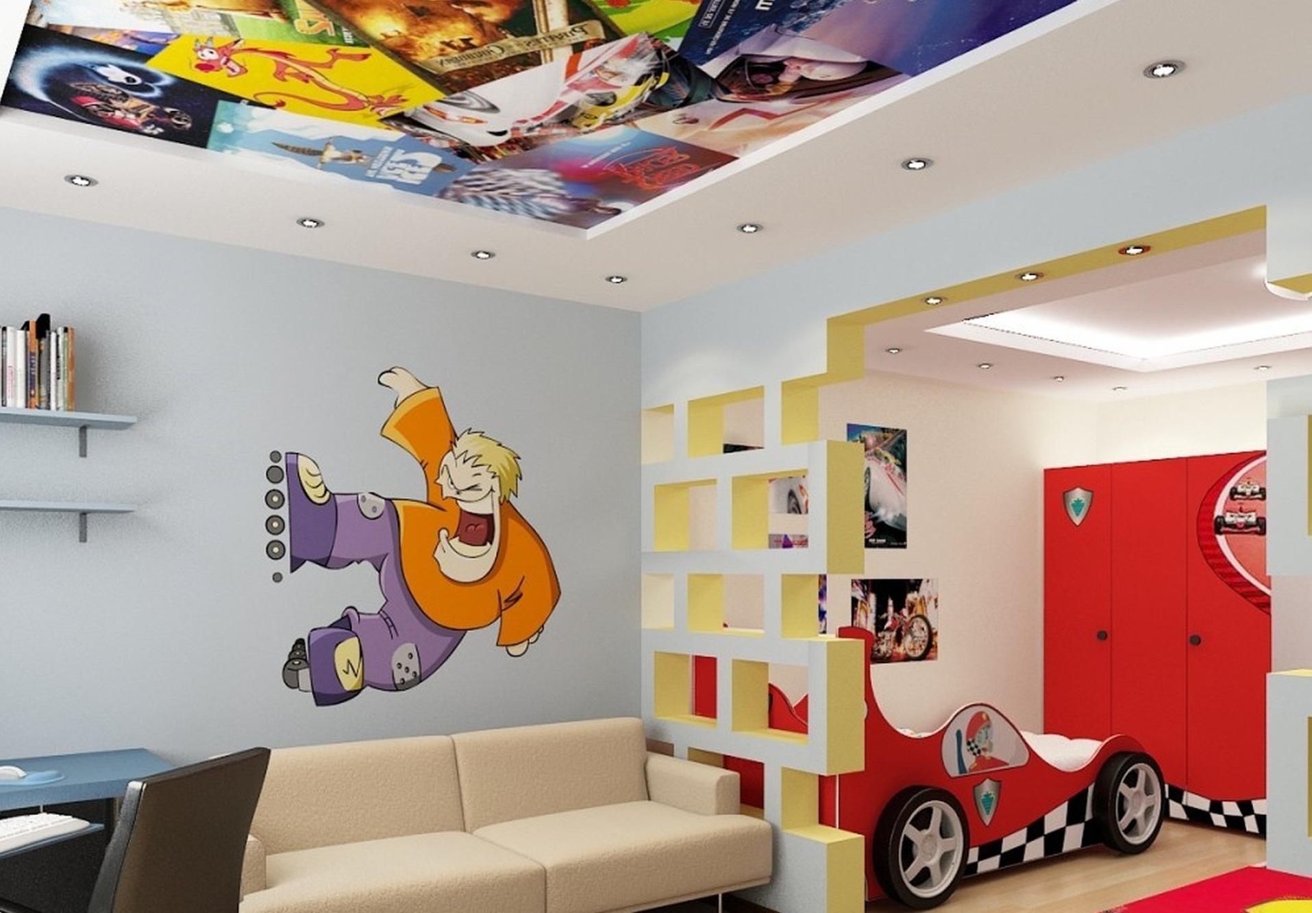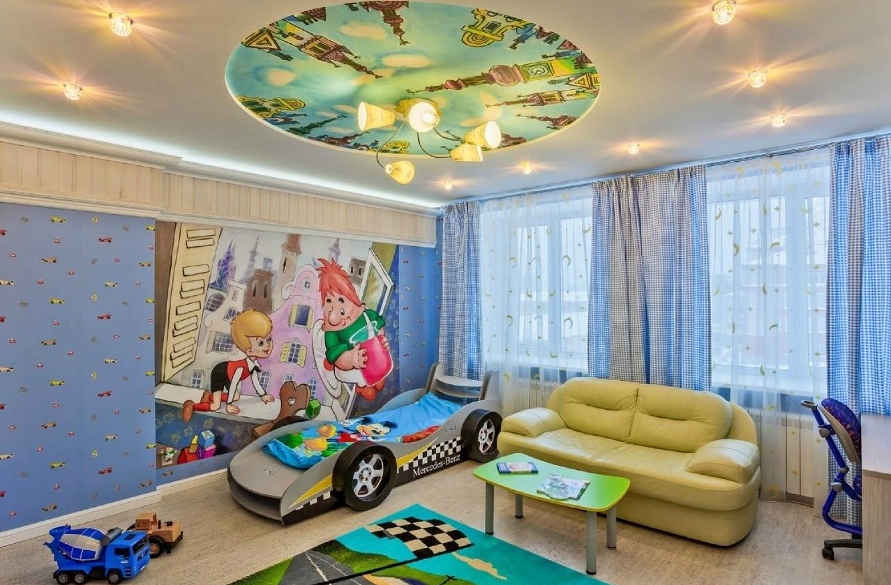 So historically, the boys are not particularly demanding for interior delights. Usually they are quite satisfied with a simple stretch ceiling with a high-quality image of a popular cartoon character or a movie hero, a knight’s castle or a treasure map, a favorite landscape or a sports car.