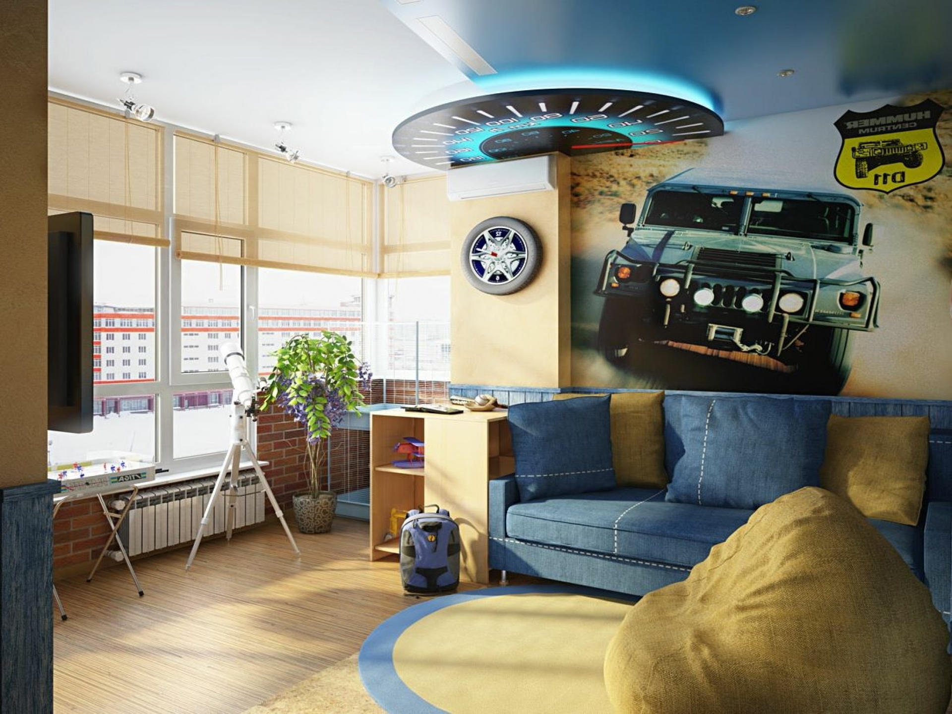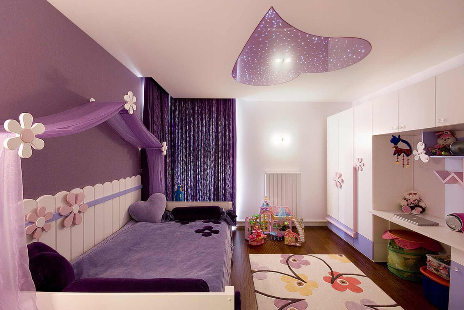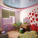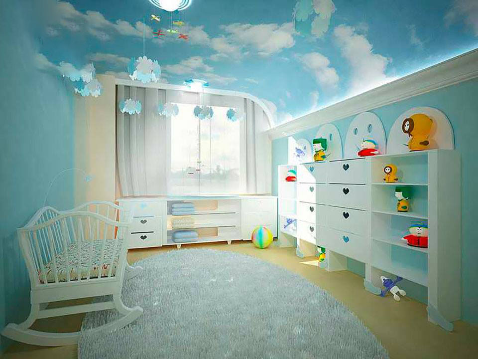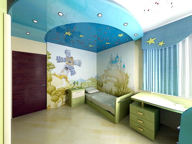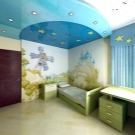 When choosing a ceiling for your child’s bedroom, try to come up with an interesting design.Looks good ceiling, stylized under the sky. This option will be relevant for a long time. So, having established it for the room of the child, you will be able to change nothing there until he becomes a teenager.