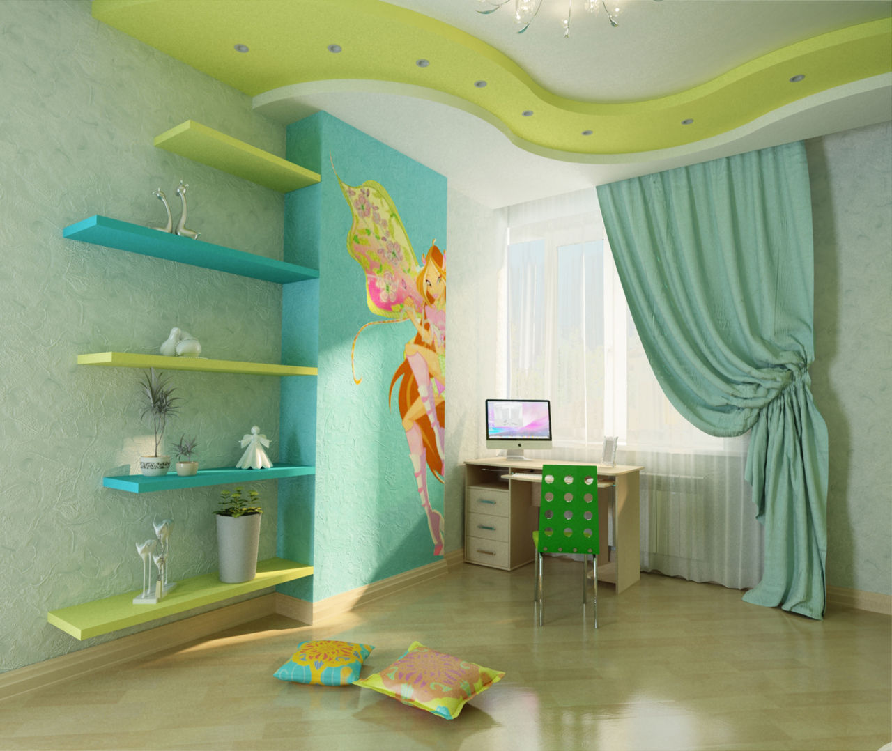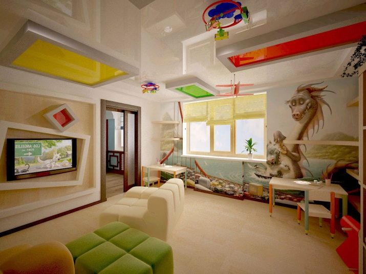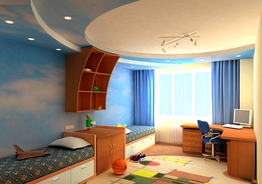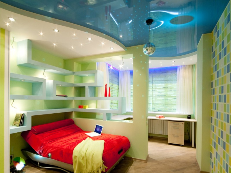 But let's sort it out in order.Let's start from the ceiling of plasterboard. For the children's room they choose him, first of all, due to the fact that it is rather safe and practical. Such a ceiling can be installed independently, without fear of making a mistake. Pleasantly pleased and low cost.