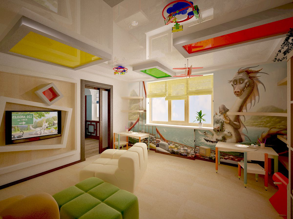 By installing light-colored suspended ceilings in your room, you can visually expand the space of your room and make it higher. This is very good for small childrens.