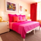 With inadequate attention to materials, synthetics will quickly acquire a charge of static voltage and will attract dust to itself. Dense and expensive materials are not recommended for cleaning at home. Care for this element of the interior will have to be carried out in professional dry cleaners. As a rule, the curtains are fixed on the ceiling curtain, which is a significant drawback for the still growing child. To pull the curtains in this case is extremely inconvenient.