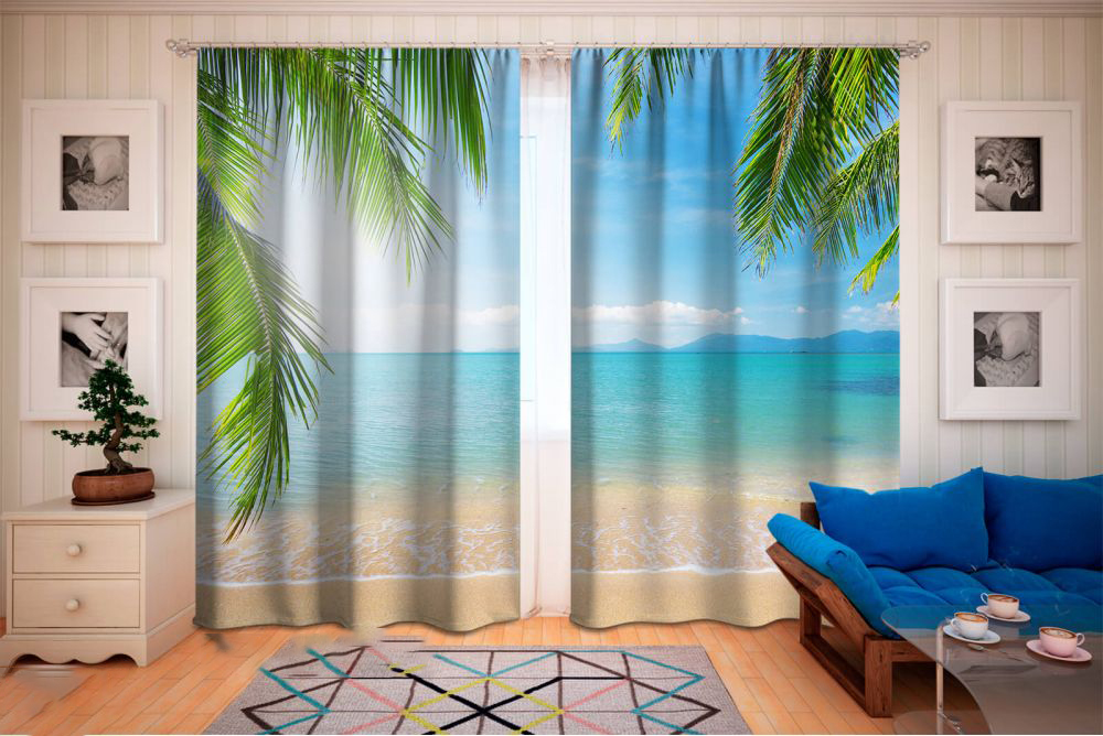 Original photo curtains with the image of the sea and palm trees will be a good solution for creating a relaxing atmosphere in a teenager's room.