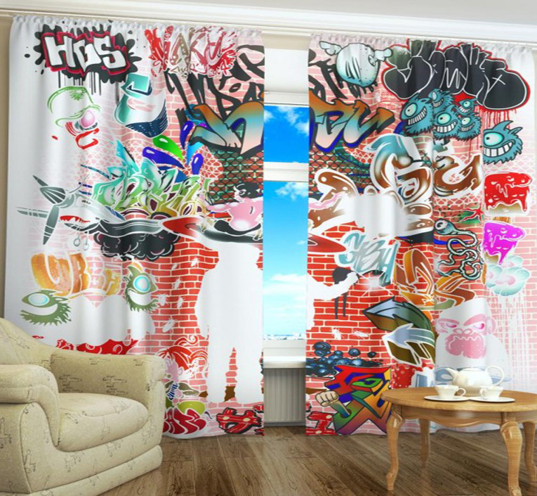 Despite the opinion of psychologists, many adolescents want a special brightness in their personal premises.Print "graffiti" performs this function completely. Bright inscriptions, images of people, signs and symbols attract attention with their originality, which is so important for teenagers looking for themselves in this world.
