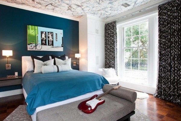 On the curtain can be painted any pattern and ornament. A rich color palette gives the room an update. The low price of this variety helps the parents of the young rebel to change the interior in accordance with his desires.