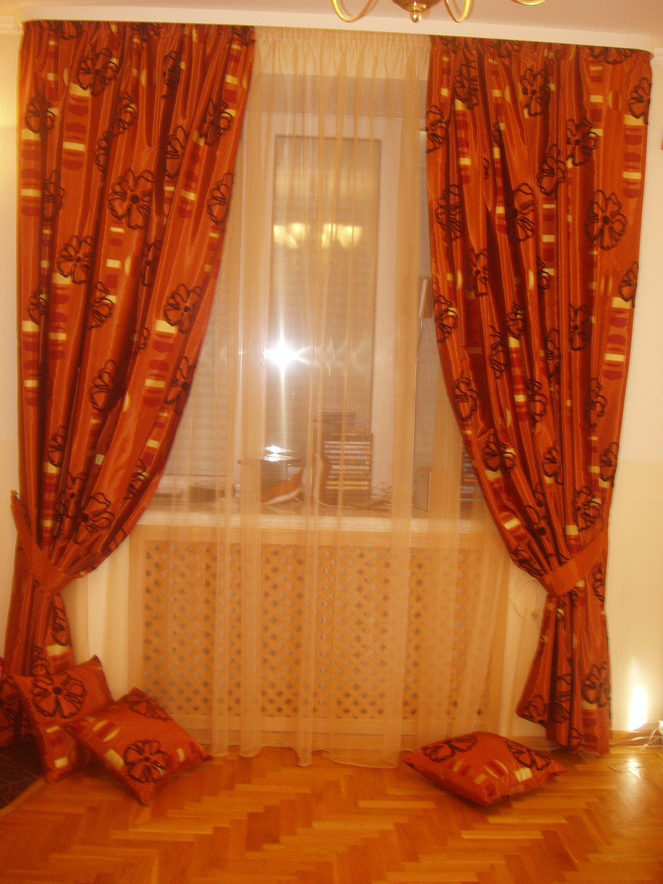 Classic curtains of thick drape fabric combined with delicate tulle or organza. The latter provide a soft dispersion of solar color.