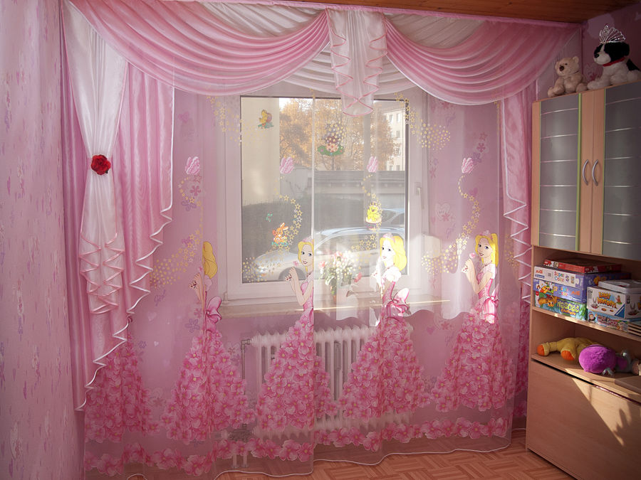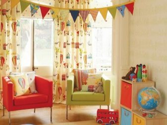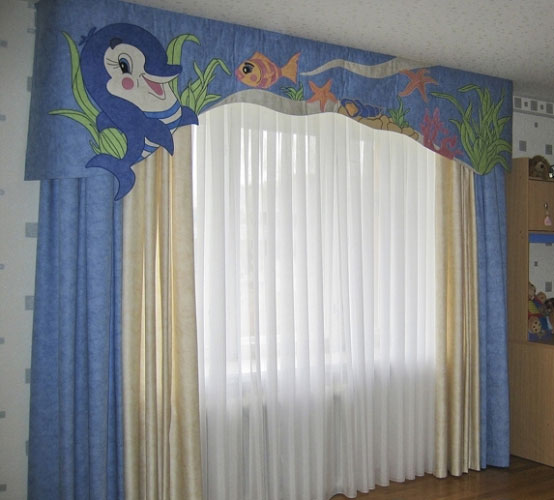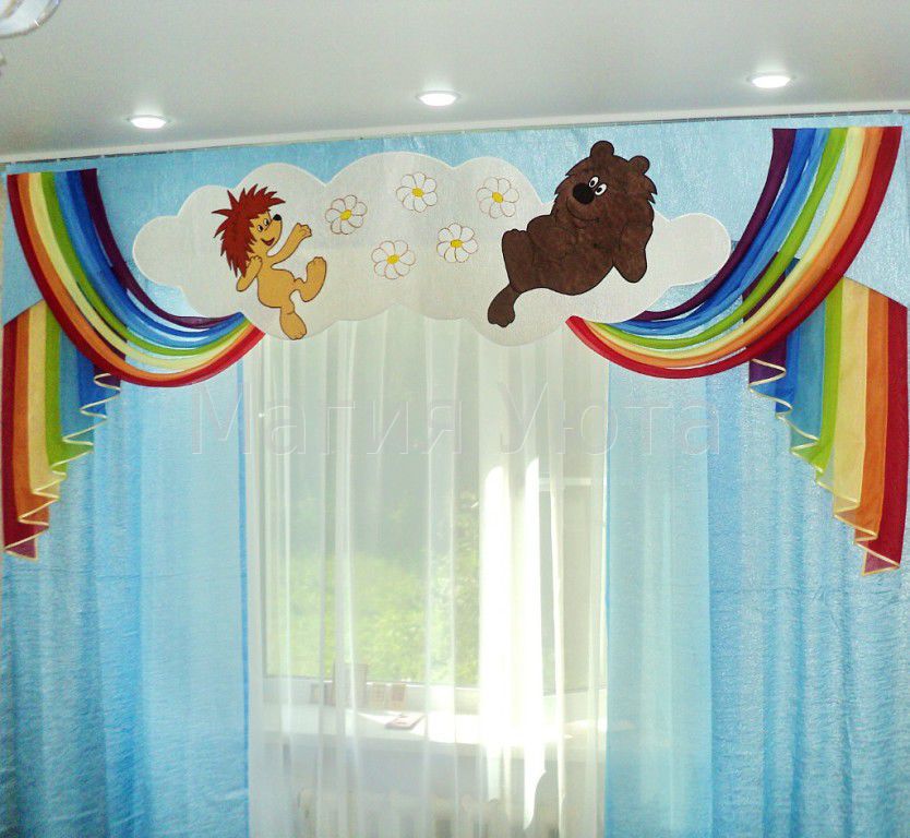 The use of lambrequins in children's rooms allows you to expand the space and at the same time hide the eaves. In addition, now models are made for every taste and for different age categories of children, which makes it possible to draw a window in absolutely any image.
