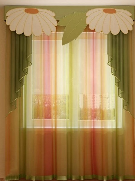 Such decorative detail as lambrequin,makes the room cozy and really beautiful. This feature, insignificant at first glance, plays a very important role in the daily life of a child. After all, the quality of the lighting directly depends on the correct design of the window, and hence, the regime of children's day.