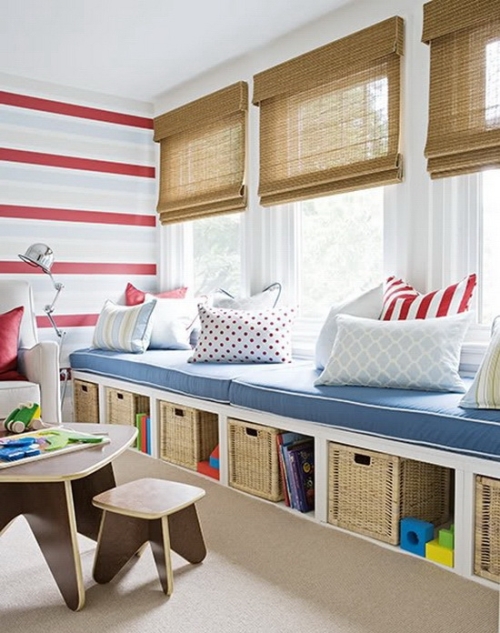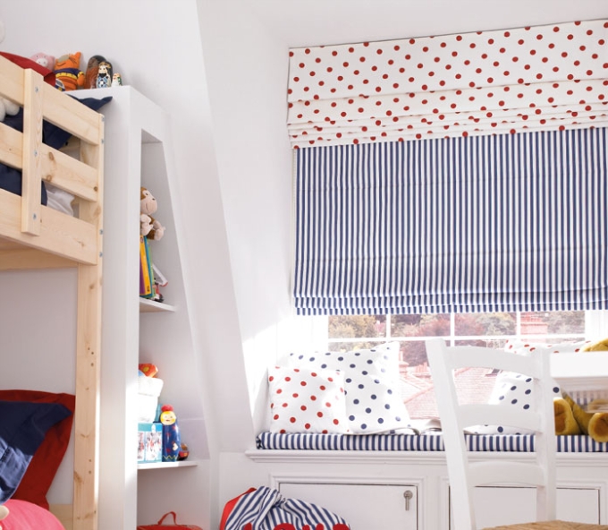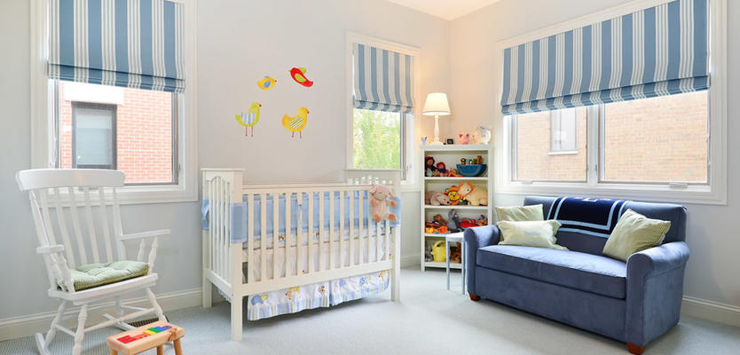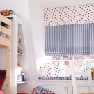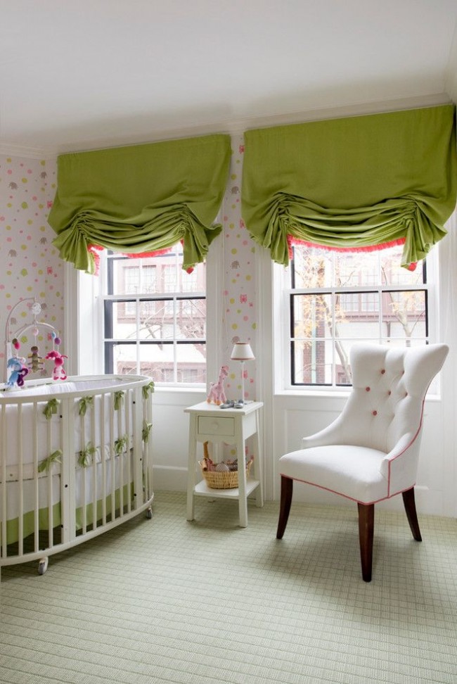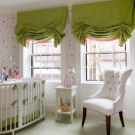 Roman curtains in their appearance are very similar to blinds. Only a little softer and more comfortable. Are made, as a rule, from flax, cotton and polyester. Ideal for minimalist rooms. These curtains save space, are easy to maintain and easy to manage - what more does a small child and his parents need?