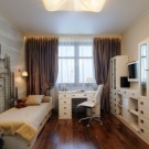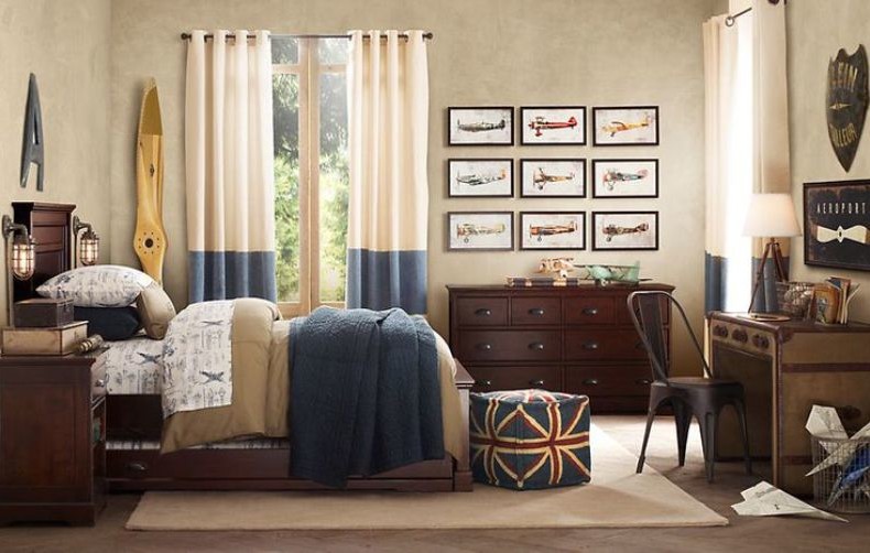 For a teenage boy, in principle, there are no particular differences. All the same calm and practicality, just a little different style. For example, the curtains can be light orange, green, and you can restrict yourself to just tulle. It is not particularly important for the boy that he hangs on the window there, just to keep him from others eyes, to be left alone with himself. The only thing is that the boy no longer needs bright colors at this age - therefore it is better to remove colors from the interior.