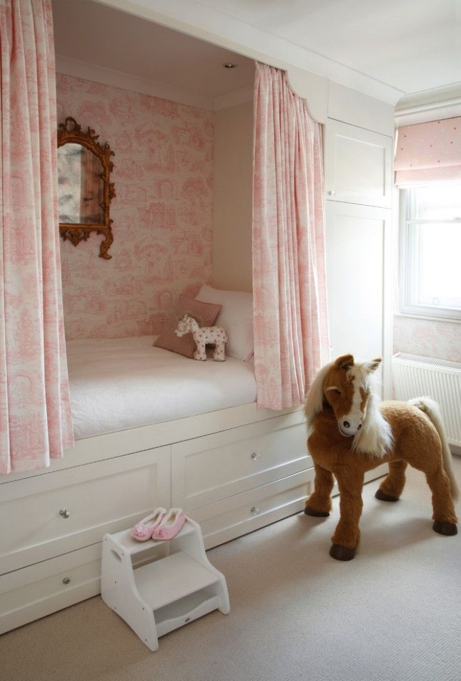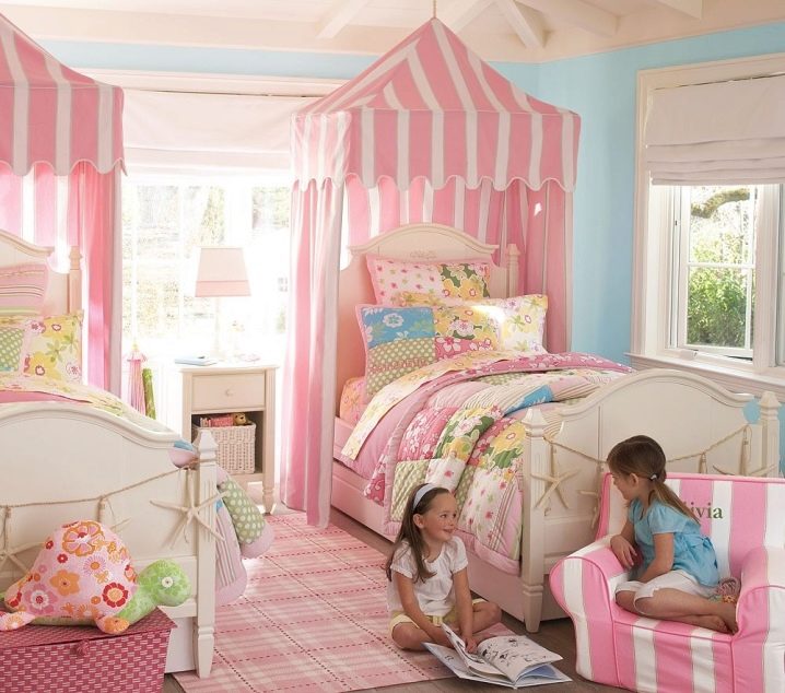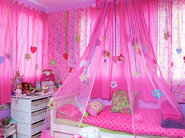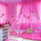 There is another interesting idea for decorating a girl’s room. For a bed of a real princess, a canopy is suitable - so that she feels safe, so that she feels comfortable. It looks really gorgeous.