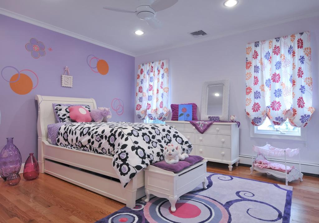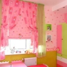 In girls, from childhood there is the same craving for everything beautiful and bright. Very interesting in the girly room will look curtains with butterflies or fairies, maybe in large or small peas. Do not forget about additional accents - like posters or small figures of your favorite characters or animals. Girls love it. But do not overdo it - from the abundance of accents dazzled.