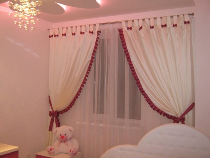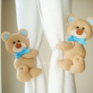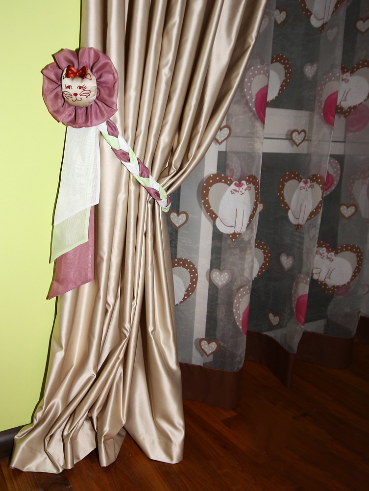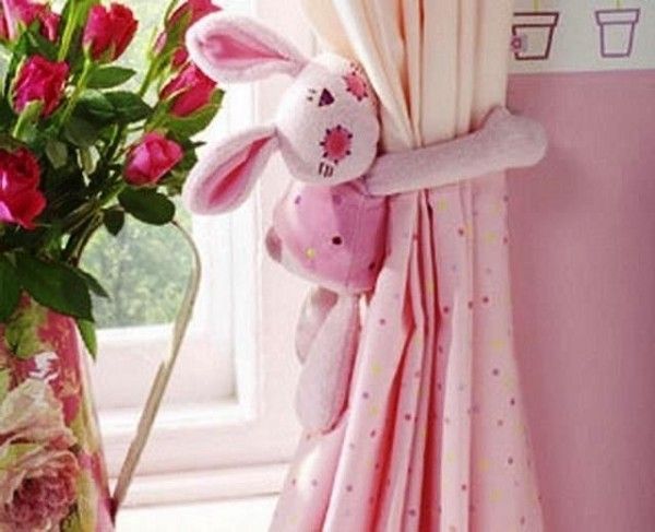 Do not forget about accessories. Curtains and pelmets are not the most suitable option for a children's bedroom, but there is also a great many other decorations. For example, tacks for curtains.These are holders for curtains, thanks to which they keep their shape and do not fly away in all directions. Tacks can be bright or perfectly match the tone of the curtains - it all depends on what effect you need to achieve. Grabs in the form of flowers or cartoon characters will look very nice - after all, we are talking about a children's room.