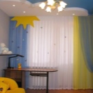 Curtains with tulle - a classic version, including for the nursery. Tulle can play the role of accent or background.As an accent, you can choose a brighter color, and as a background - quieter. Lush curtains of tulle will look very nice in the girl’s room, and straight sea tones look like a boy’s room.