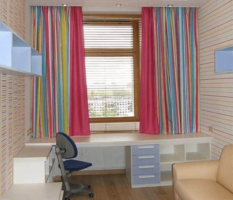 After ten or eleven years, the child usually wants something calm. Bright colors fade into the background, interfere with focus, and now the teenager gives his preference to pastel or at least not screaming tones. For girls of this age and older, white straight curtains will be preferable, or gentle neat veils.