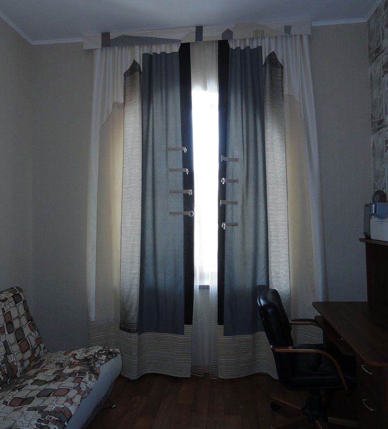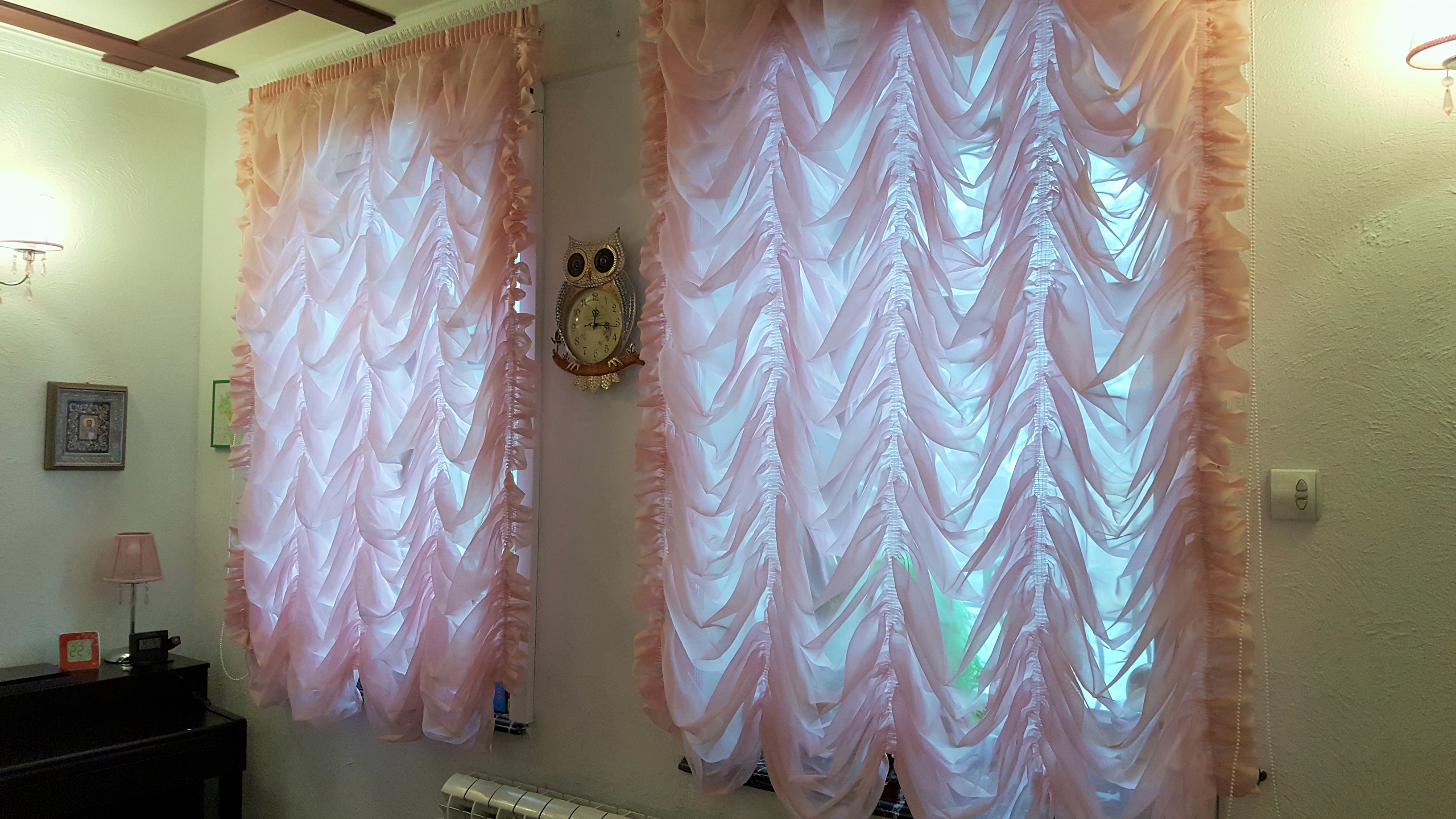 The best option would be bilge and cotton curtains. They are smaller than synthetic, collect dust and do not electrify. However, the curtains of cotton and flax quickly crumple. Very often, curtains are made from coarse calico, taffeta, satin, calico and guipure.