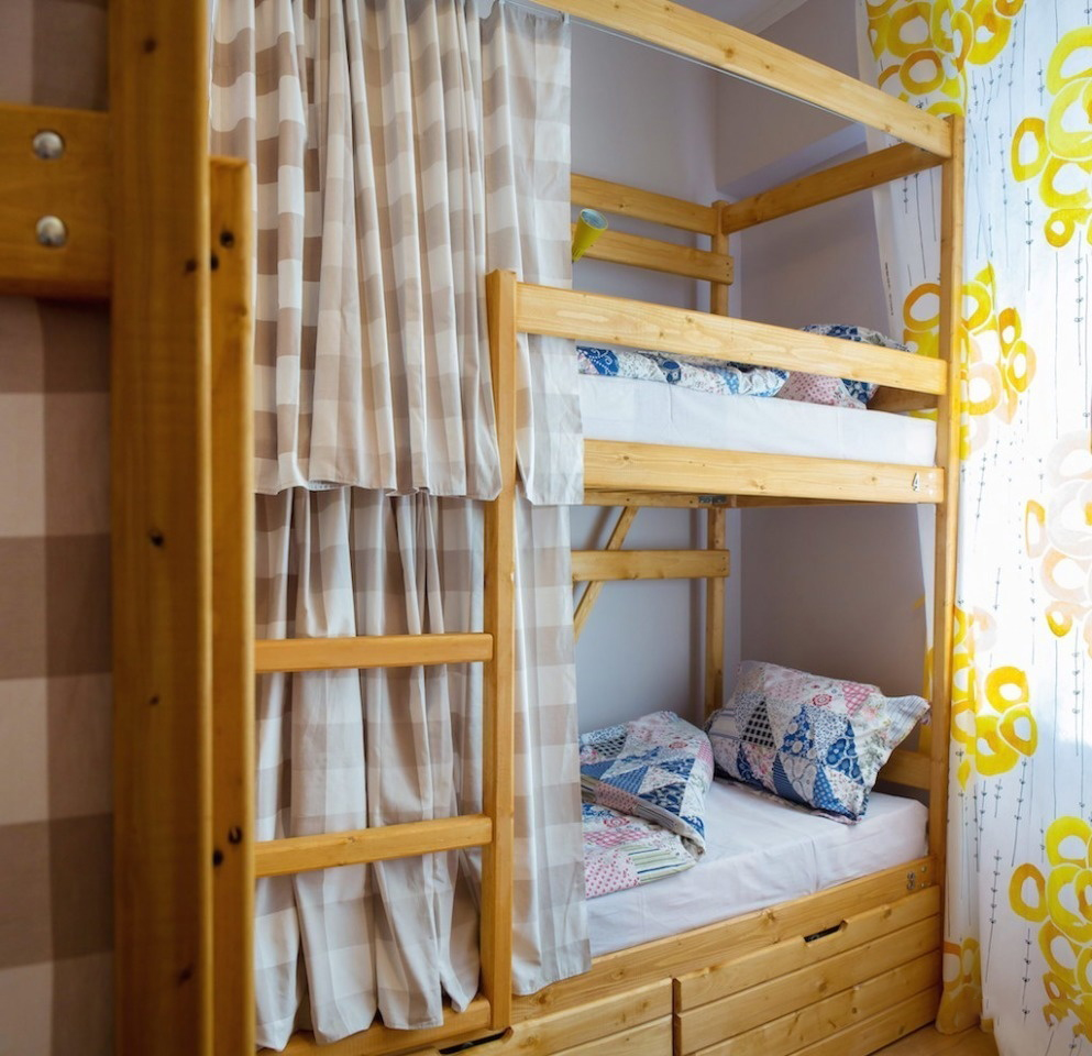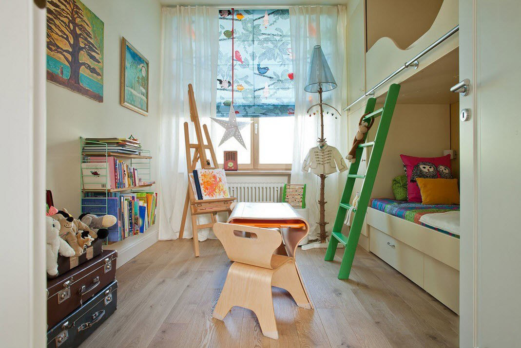 How to make a nursery in Khrushchev - a really difficult question. Space in such apartments, as a rule, is terribly small, so every meter counts. Such a room should not be cluttered and forced a huge amount of furniture. Zoning is a great idea for a small room. Like bunk furniture.In order to visually increase the space, you should use light colors - in the decoration of furniture, wallpaper, curtains and ceiling. Avoid dark shades.