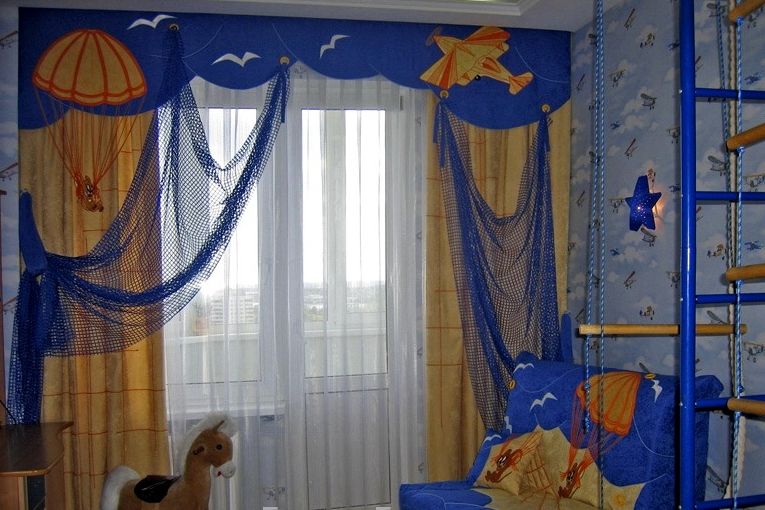 If the boy does not have any particular preferences for something, then plain curtains in his favorite colors will be ideal. The same applies to the already grown up boys. Minimalism and simplicity is always in fashion.