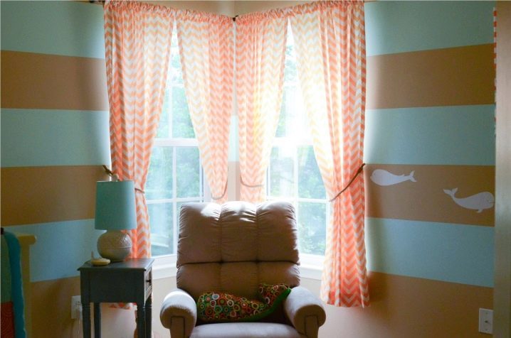 Corner curtains should repeat the bending of the window. When choosing them, you should understand what you want to achieve - hide the window or make it more visible. Corner curtains can be a great accent to the interior. When choosing them, it is worth thinking about a specialized cornice - also angular. In the case of a small corner window, you can make one exception - the curtains here can look very elegant and appropriate.