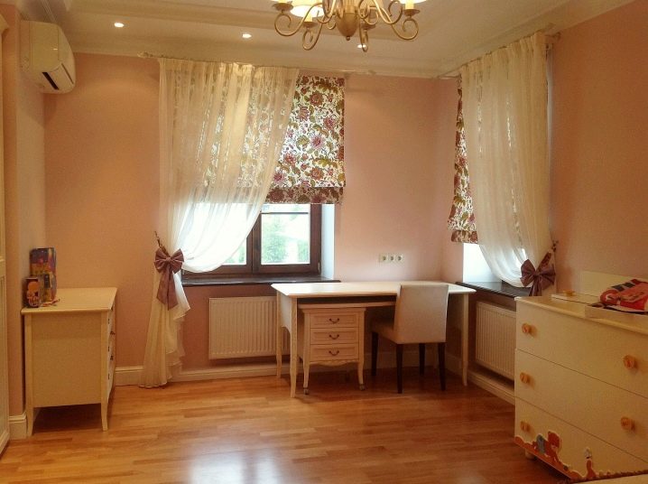 Such curtains should at least reach the window sill or end above the table - after all, the main role of the curtains is to hide the life of the child from prying eyes and to prevent the penetration of light. Therefore, the curtains are shorter to choose absolutely not recommended. There are several types of short curtains that may be suitable for the interior of the nursery: these are French, Austrian and Roman curtains.