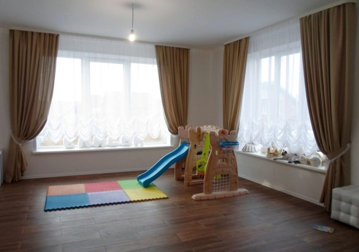 The only thing that parents really need to worry about is security. For example, it is better to pick up curtain rails for curtains, so that the child during the game does not accidentally twist anything and does not hurt himself. It should be attached to the wall as tightly as possible.