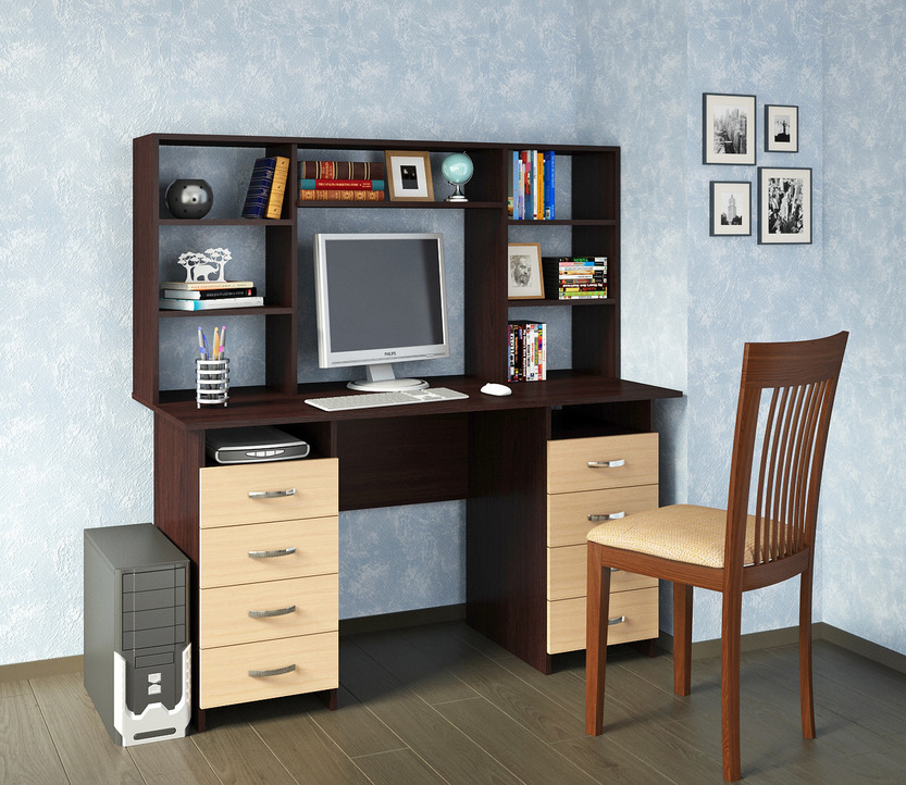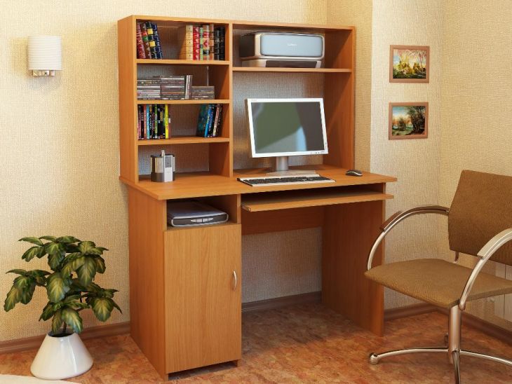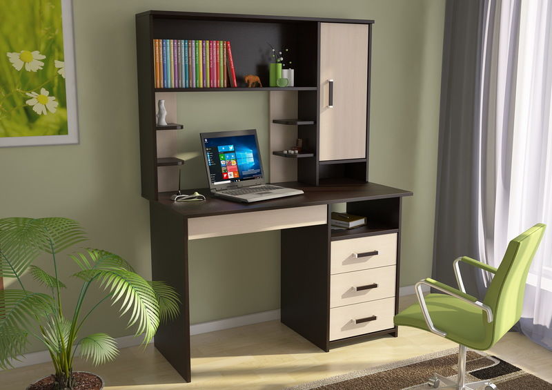 A more standard version is a rectangular table that resembles school desks that are familiar to school. Such a table with add-ons will organically fit into any interior.Tables made of natural wood or chipboard will perfectly fit into a room with an eco, country or classic interior. But the glass or plastic tables, although they are cheaper, but fit the modern style quite well.