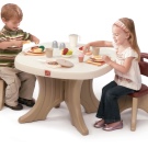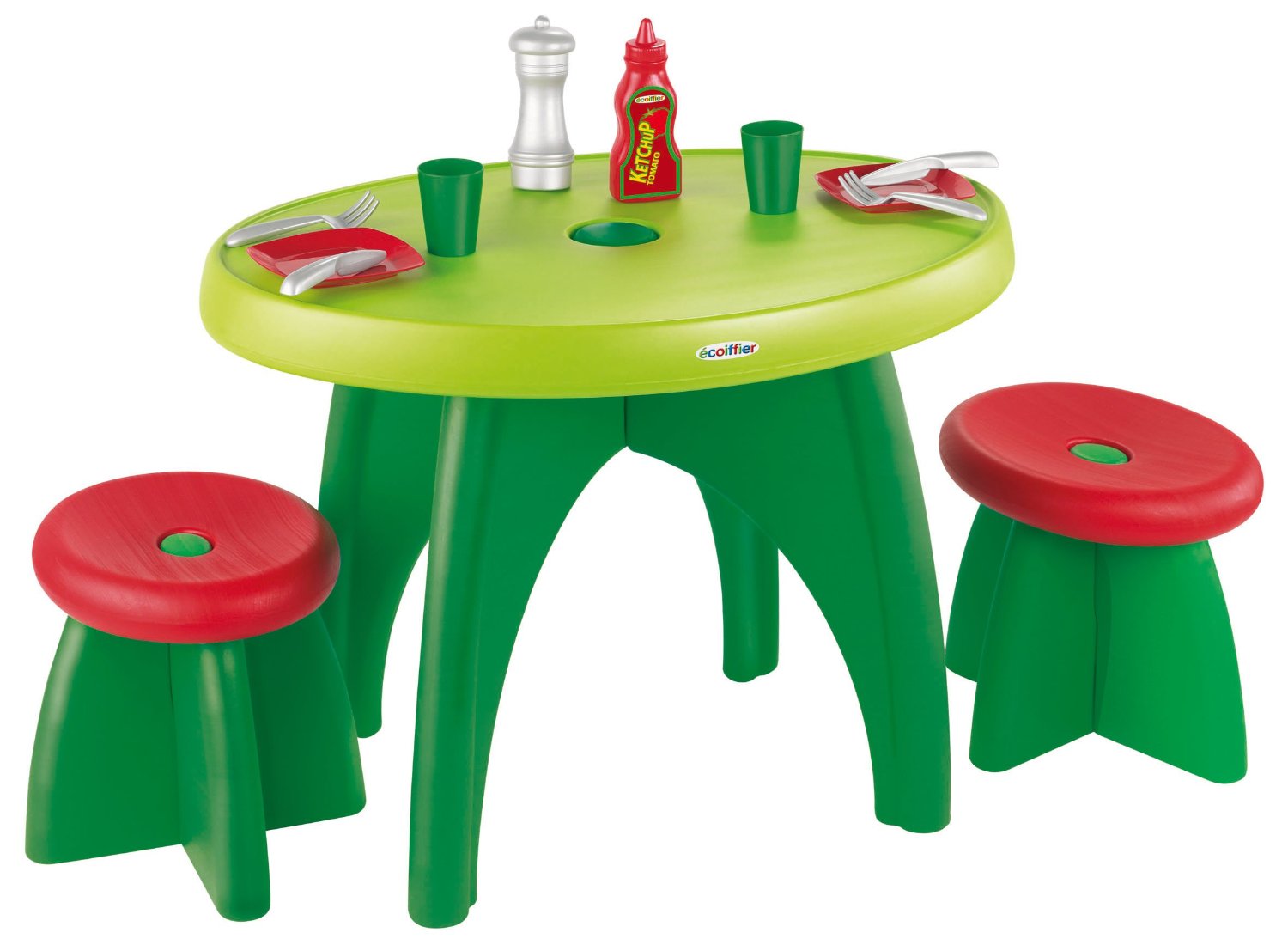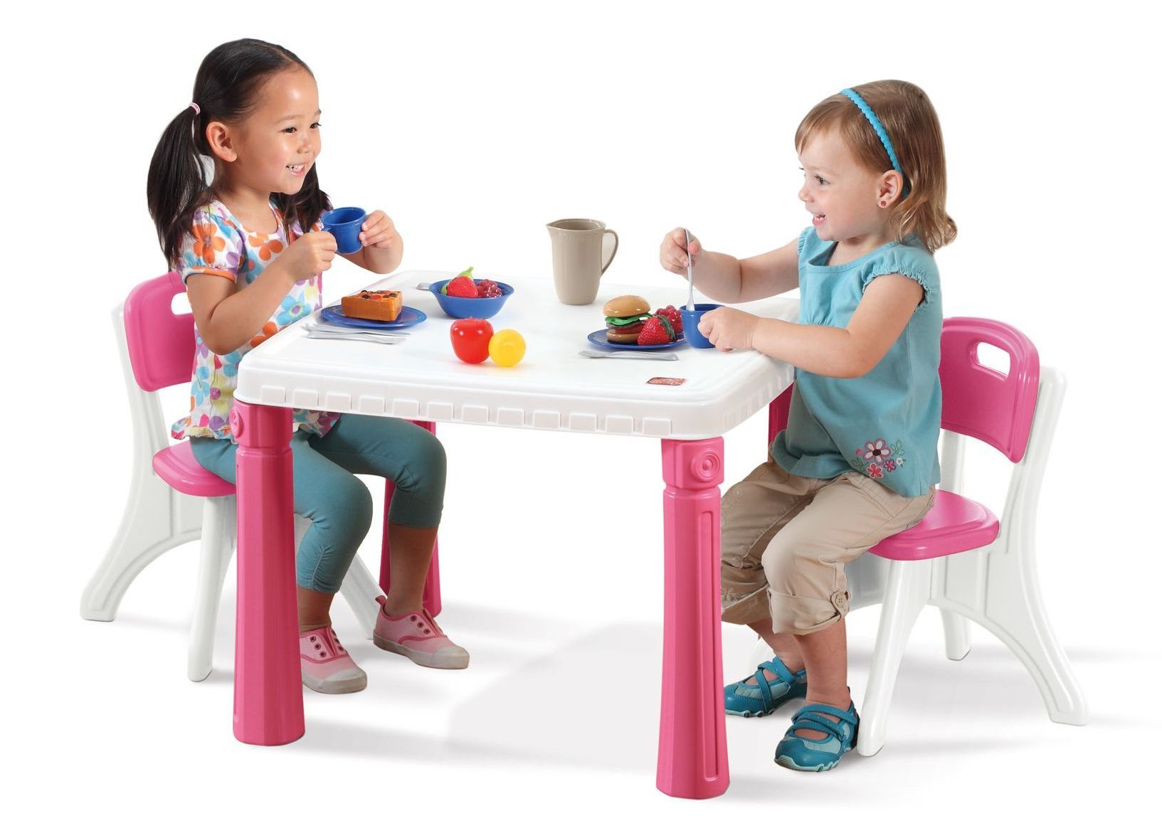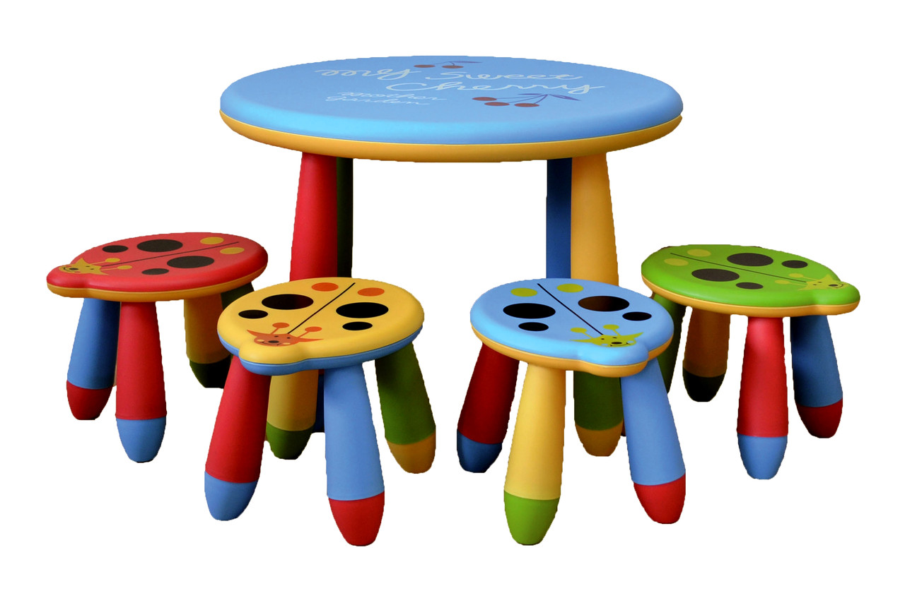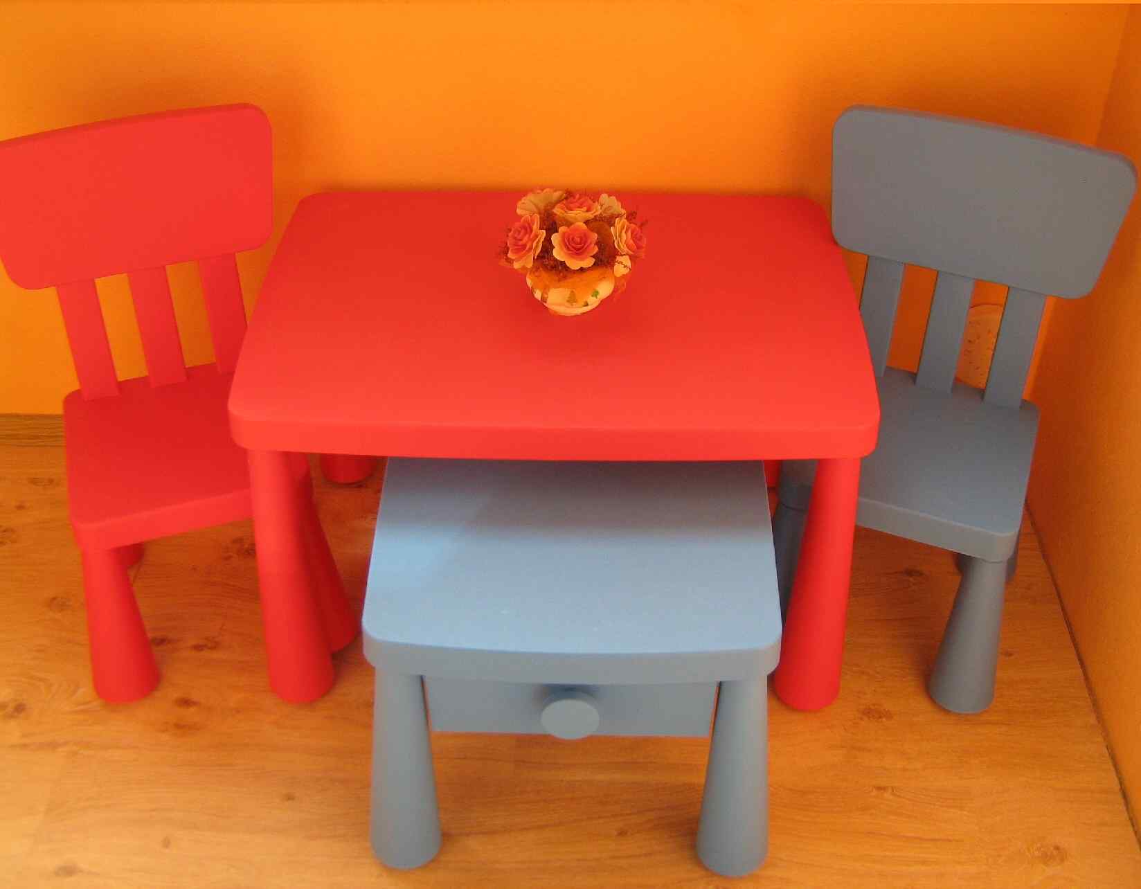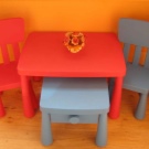 The disadvantage of plastic furniture can be its fragility. If you use a table for eating, traces of hot dishes may remain on the plastic. The little fidget swings and jumps on the stool to avoid cracks and breakdowns.