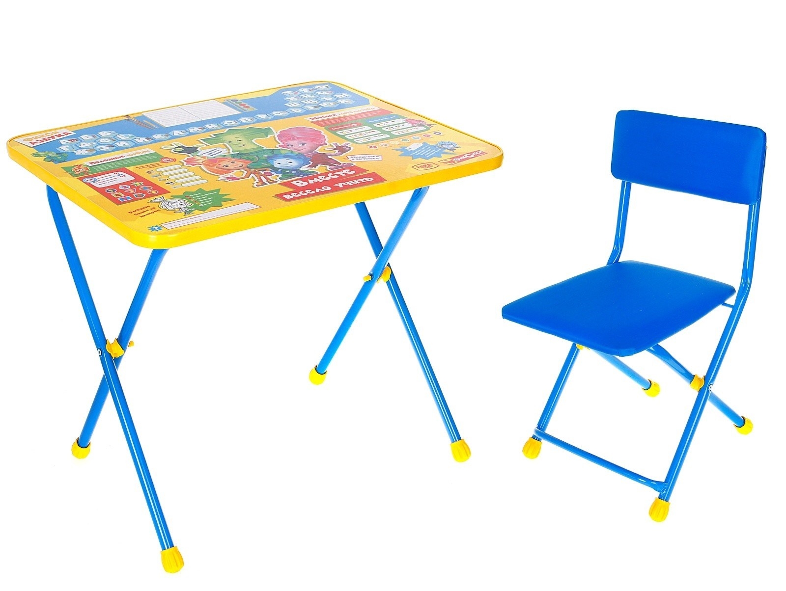 - Folding tables with chairs. A great option for a small apartment or nursery. In the absence of need, such a kit can easily be folded and put away in a closet. Most often, these tables have a light weight, they are easy to clean and wash. Suitable for a small room in which two children grow up.