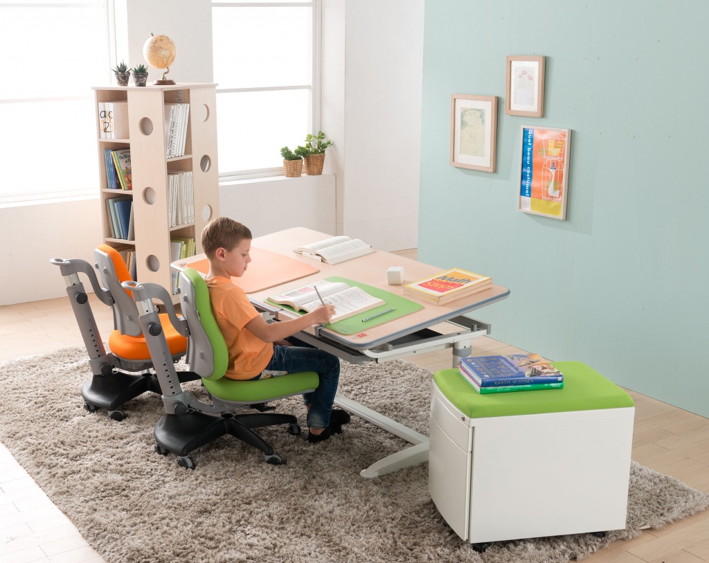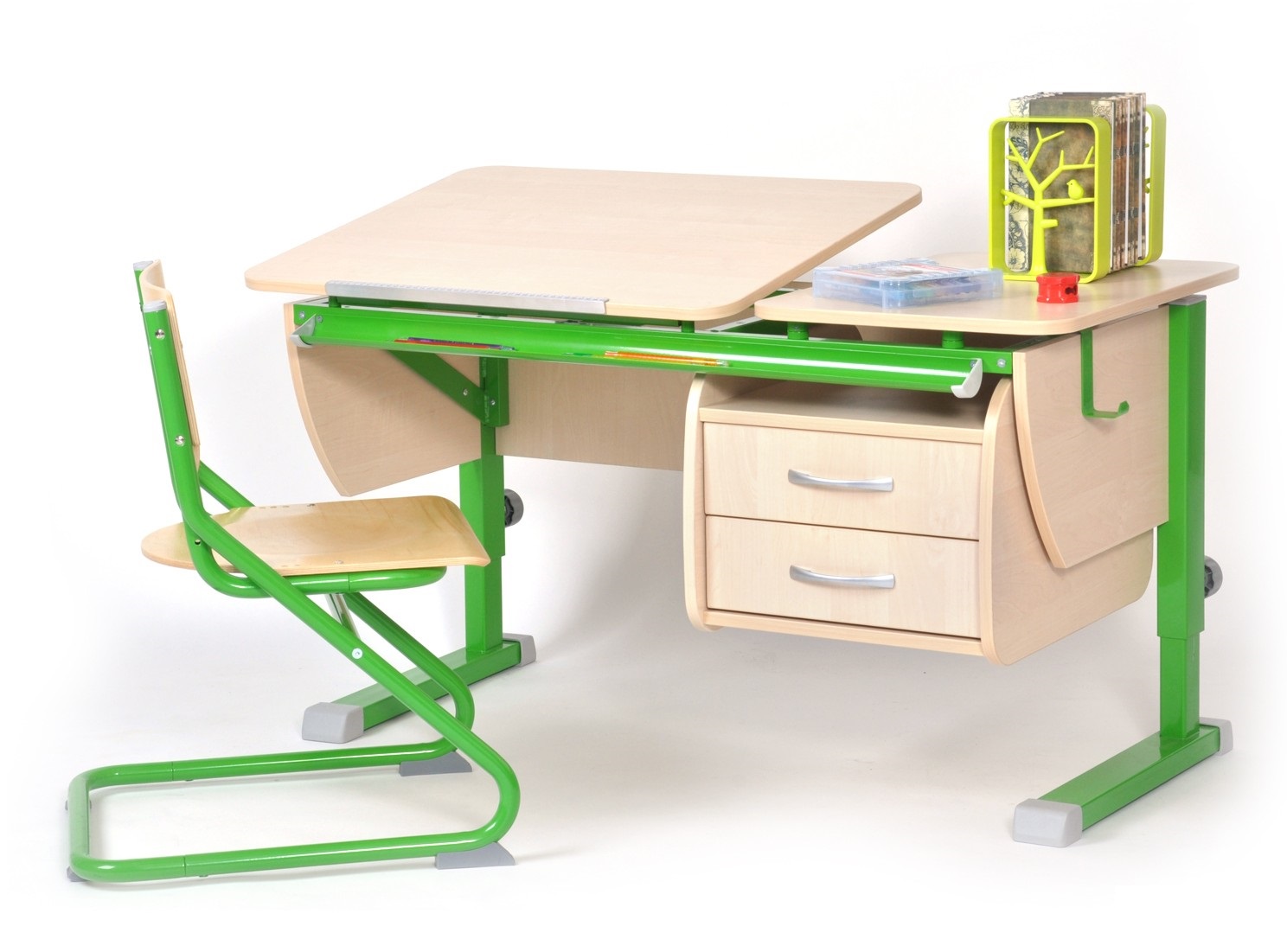 For a child’s 5-year-old’s children's room, it’s worth choosing models equipped with drawers or side shelves, this will allow you to keep close the office and other important items. Growth parameters: table-top - 64 cm, sitting - 38 cm.