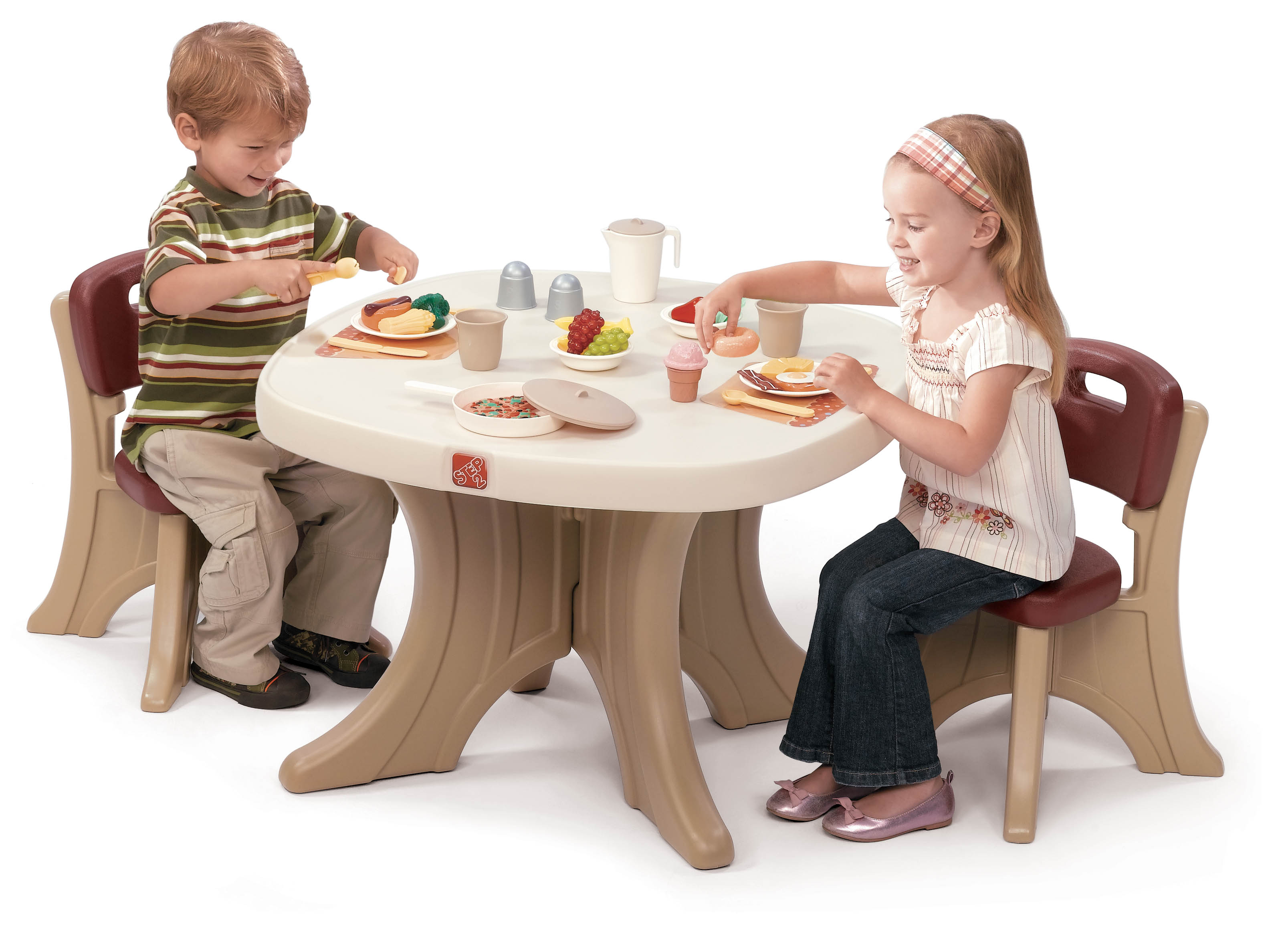 Popular children's tables and chairs made of plastic, they are light and inexpensive, which is important with the rapid growth and development of the child. Cope with the movement of such a design can even a child.Mom will not have to leave the baby alone or constantly run to the nursery, if she is busy in the kitchen, just drag the table there.