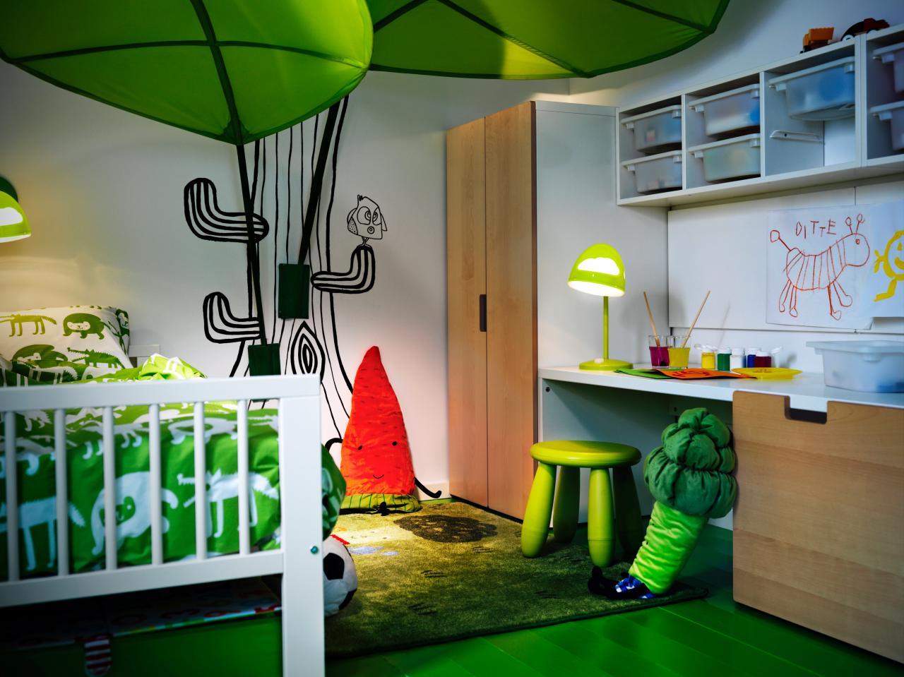 The limitation will be dark colors: black, purple, dark brown. Their use in the children's interior should be minimized. If you want to choose a table or a chair of exactly dark color, light or color ornaments on it can become a compromise. Simple geometric patterns will fit well: stripes, dots or large circles, triangles of different shapes.
