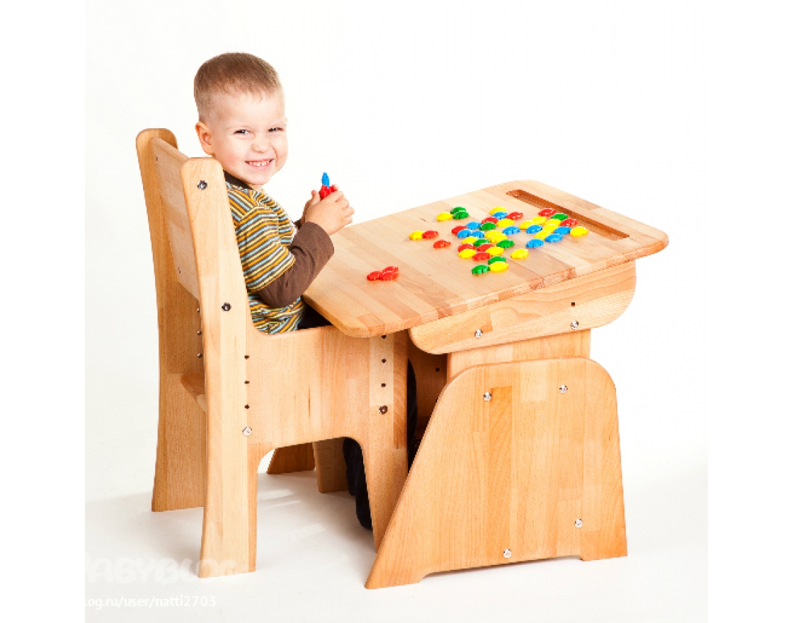 Plus children's furniture in its adaptability. The baby must grow among the things that fit him. It is important that the child himself could sit at the table, take things from him, which is impossible with the dimensions of "adult" furniture.