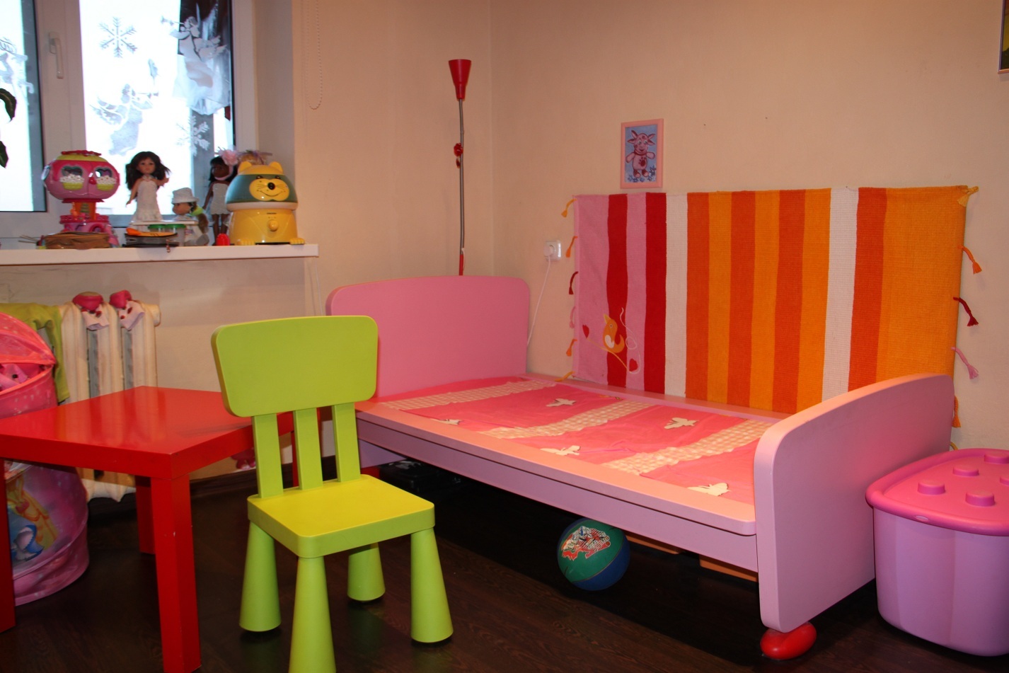 If the room is decorated in bright colors, then the furniture must be selected appropriate. Cheerful shades of orange, pink, yellow and even red will do. But, designers are not advised to choose too flashy and acid shades, it will distract the kid from the lessons. Bright colors (red, orange, herbal) should be diluted with more restraint — white, gray, beige.