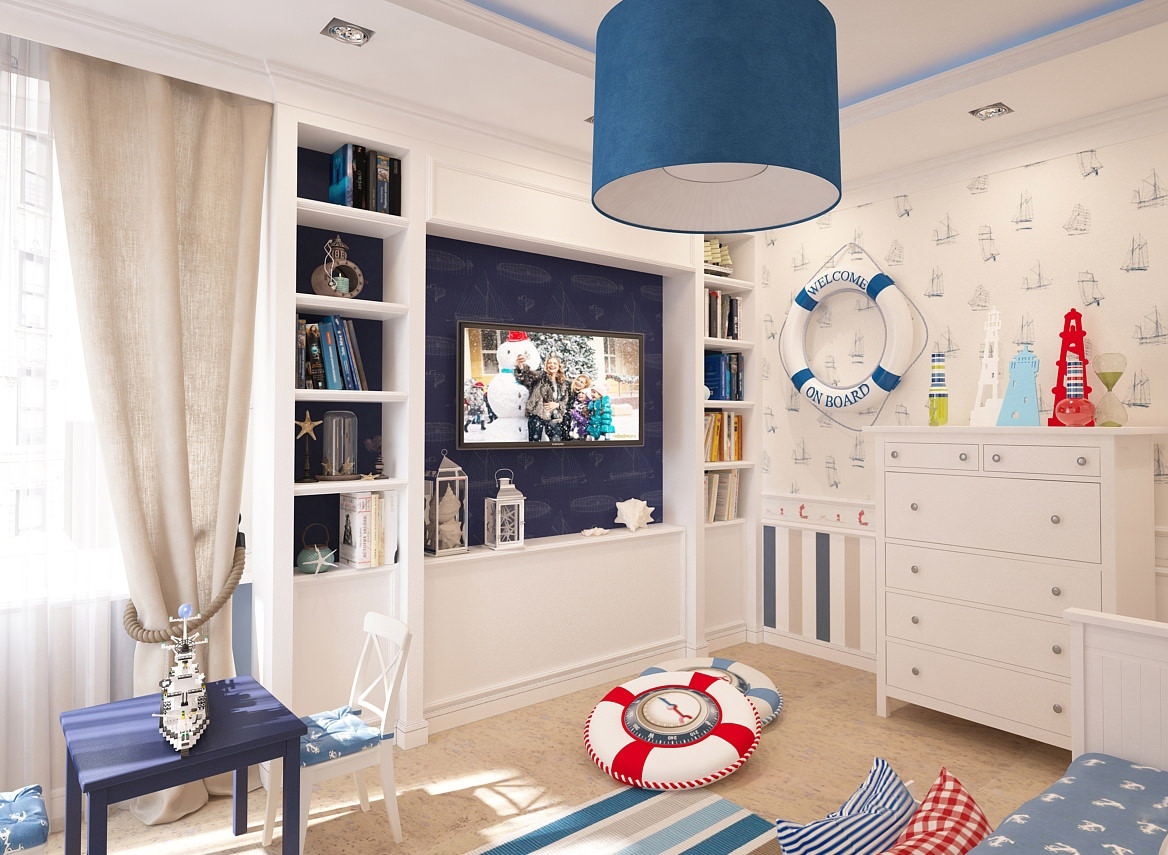 To diversify the nursery, you can choose a table model with a chair of interesting shape. For a boy, this could be a sports car or a captain’s cabin, and for a girl, a dressing table with an elegant high chair with carved legs.