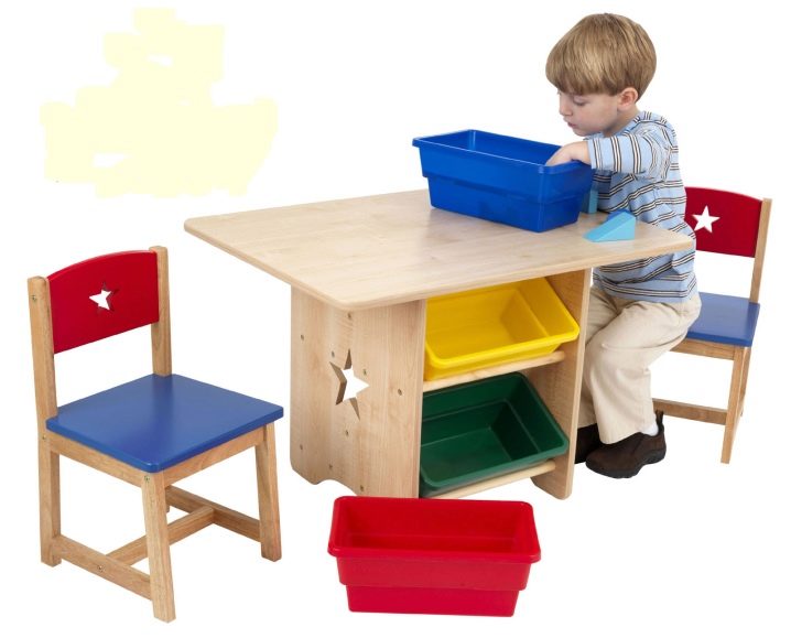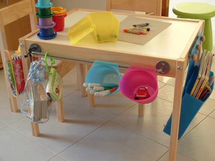 Additional devices and designs will help to make the process of creativity more convenient and more interesting. So, many children's tables with chairs are equipped with drawers or containers for markers, colored crayons and pencils, you can find models with attached rolls of paper for drawing.