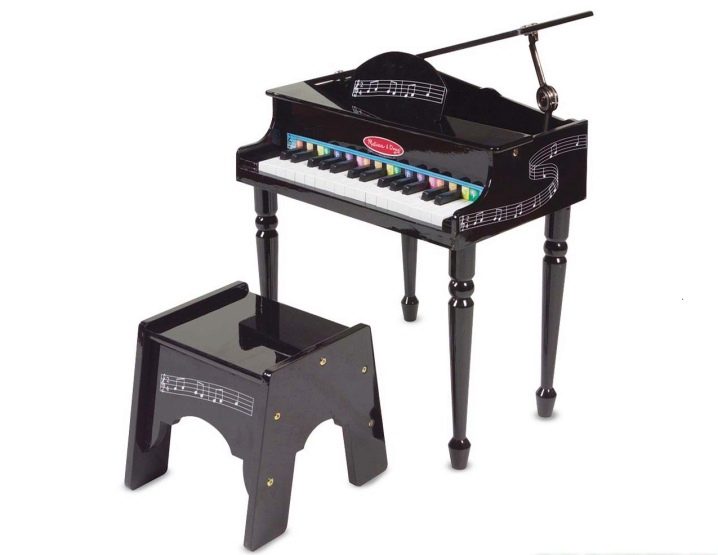 The piano, or a synthesizer with a chair and other accessories, is equipped with special buttons and keys and can produce both ordinary piano key sounds and special ones: animal voices, sounds of other musical instruments. A small piano will help develop the potential of the child, will teach to distinguish sounds.It all depends on the age of the child and the model of the piano table.
