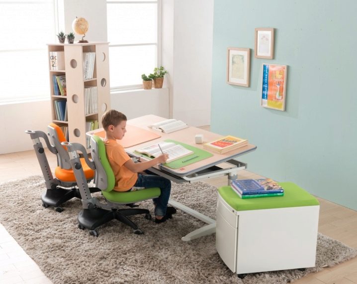 - Height adjustable. This model is very convenient because it does not need to be replaced often. The table and chair, thanks to special regulators, “grow” together with the child. When the baby adds a dozen centimeters, simply lift the countertop and seat and fix it to a new level. Such a model may relate to orthopedic.