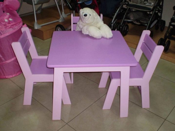 There are separate models of tables and chairs and assembled sets. The choice depends on the taste preferences of the parents and their children. Differences can be in color, material, design and adaptation to creative activities or eating.